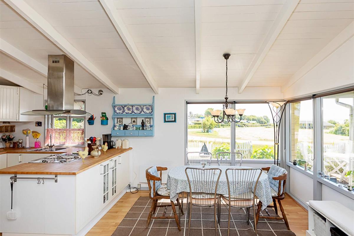 Älteres Ferienhaus mit schöner Aussicht auf das Wasser. Das Haus liegt