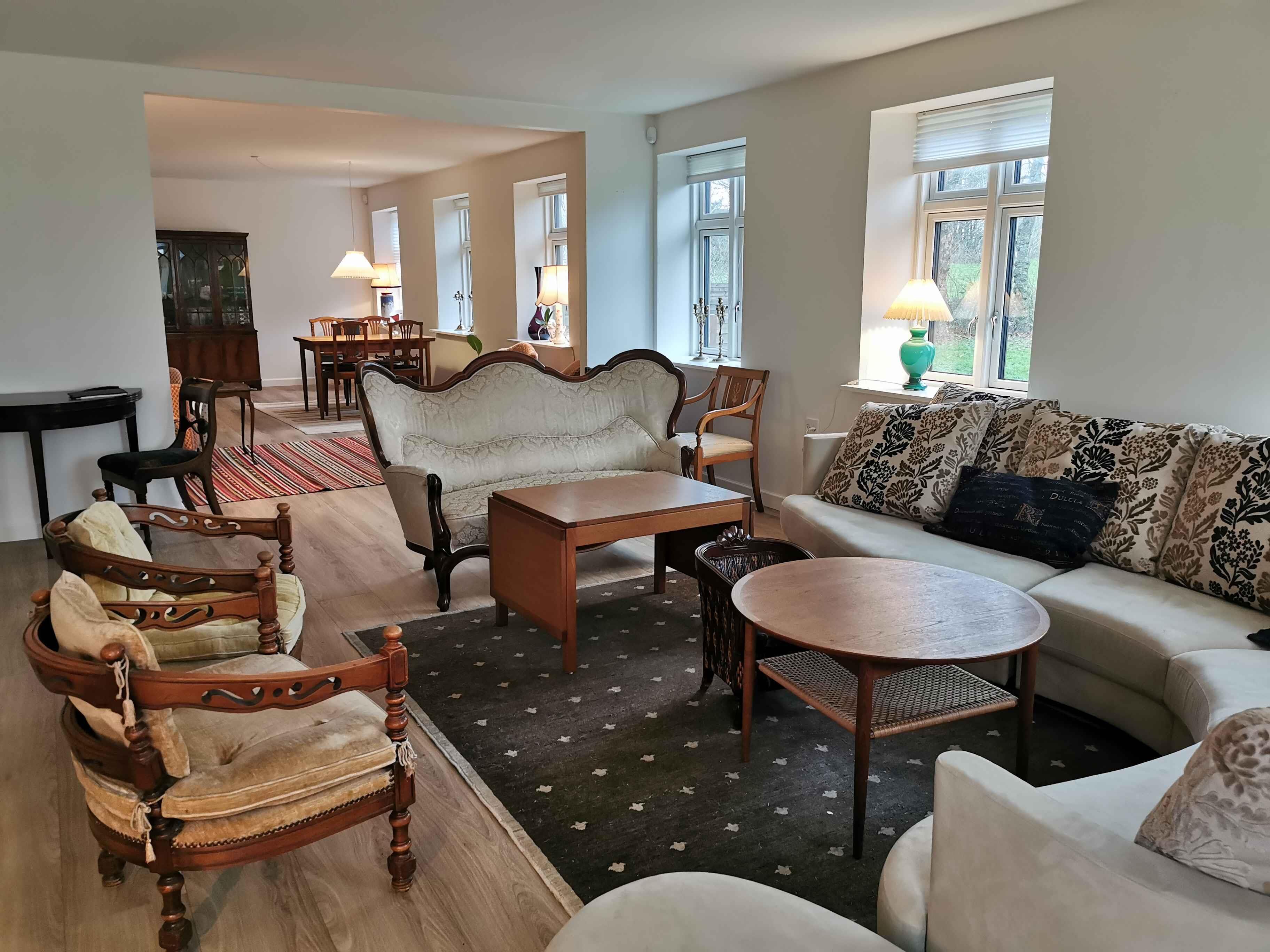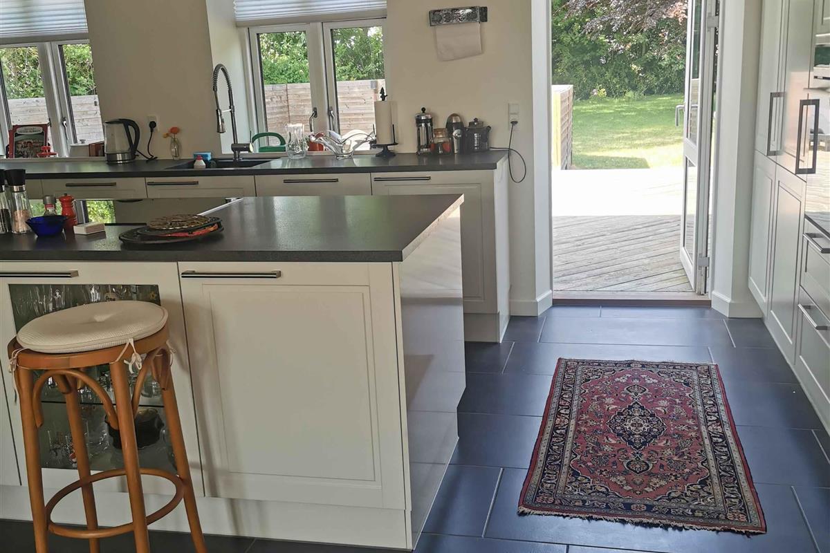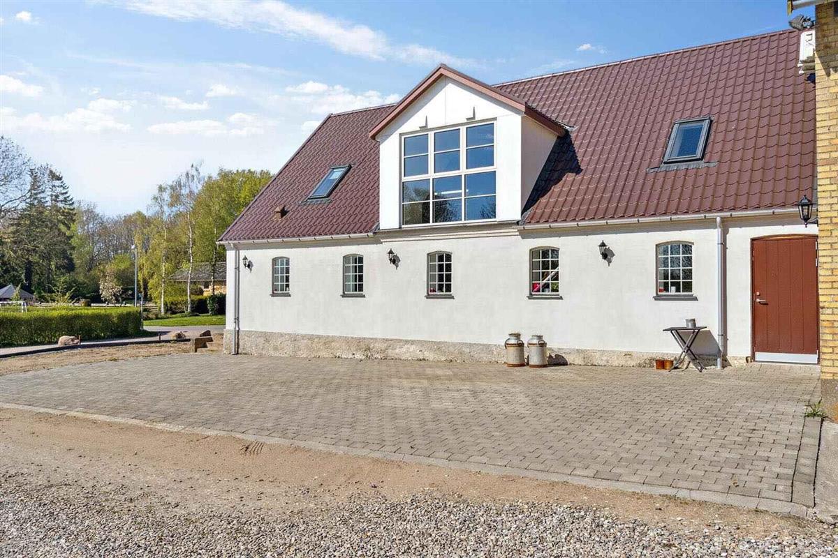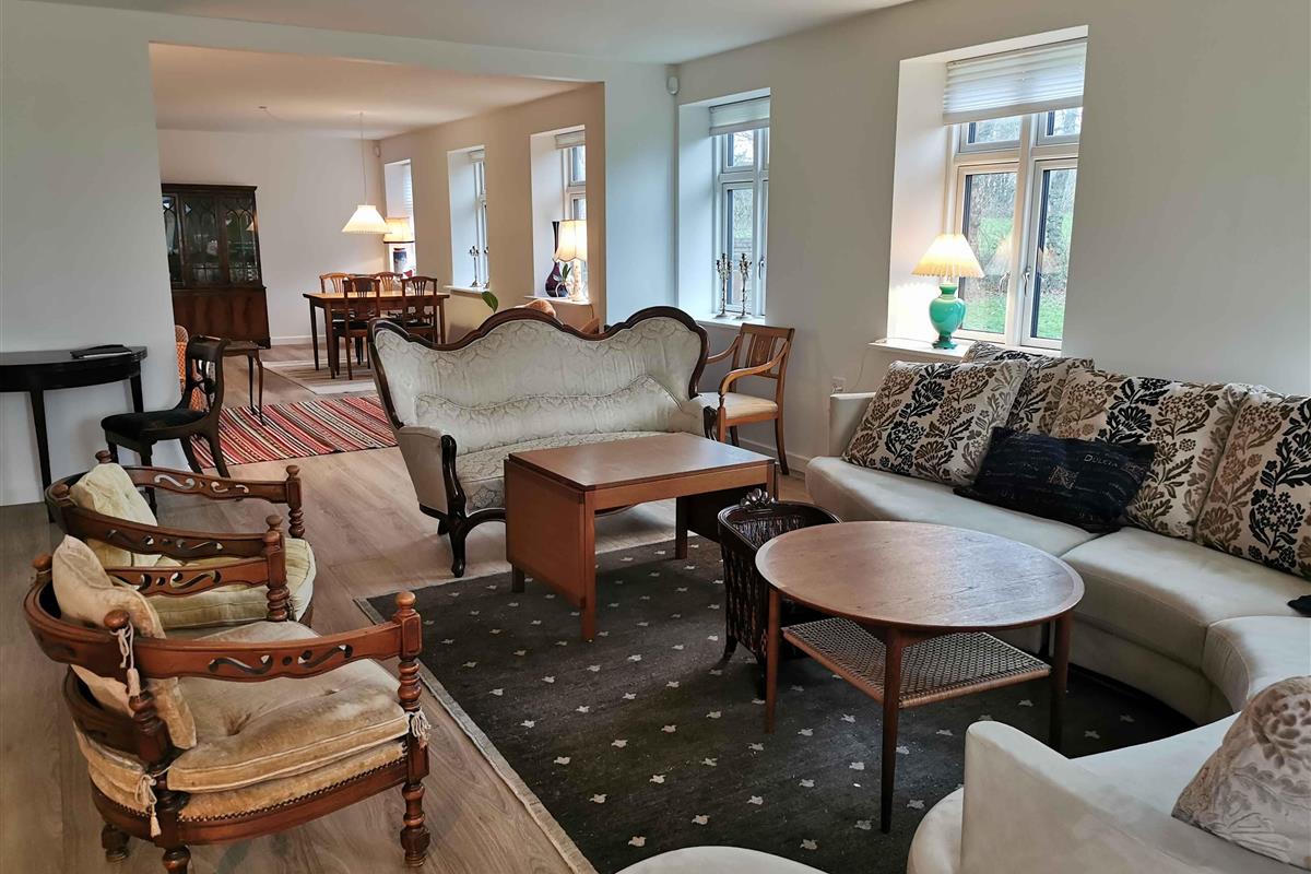 Dit charmante boerderijhuis, gelegen in het hart van een natuurschoon gebied, biedt een unieke vakantie-ervaring voor zowel grote gezinnen als vriendengroepen. Daarnaast is deze prachtige woning geschikt voor bijeenkomsten en workshops. Met zijn 350 m² biedt de woning veel ruimte en privacy. Het hart van het huis is de modern ingerichte woonruimte, die elegantie met gezelligheid balanceert. Hier kunt u samenkomen voor de open haard of genieten van een maaltijd in de ruime keuken. Voor de gasten die blijven slapen is er voldoende ruimte met 5 slaapkamers en 16 slaapplaatsen. De master bedroom op de begane grond, met eigen badkamer, tweepersoonsbed en slaapbank, zorgt voor een luxe privésfeer. Op de eerste verdieping vindt u: twee kamers - beide met een tweepersoonsbed en een uitschuifbaar tweepersoonsbed, een kamer met een tweepersoonsbed en een eenpersoonsbed en een kamer met een tweepersoonsbed en een eenpersoonsbed. Buiten biedt het grote, mooie houten terras met tuinmeubelen de perfecte plek voor ontspanning en gezelligheid onder de open lucht. De 1 hectare grote grond biedt ruimte voor zowel spel als ontspanning. Het gebied rondom de woning is een schatkist aan ervaringen. Natuurliefhebbers zullen de nabijgelegen bossen en wandelpaden waarderen. Voor cultuurliefhebbers bieden de omliggende steden historische bezienswaardigheden en charmante winkels. Een bijzonder voordeel is de locatie van het huis; slechts een uur rijden van Kopenhagen, wat gemakkelijke toegang biedt tot de vele attracties en ervaringen van de hoofdstad. Dit pand is een ideale ontsnapping uit de drukte van alledag, waar u onvergetelijke herinneringen kunt creëren met uw dierbaren.