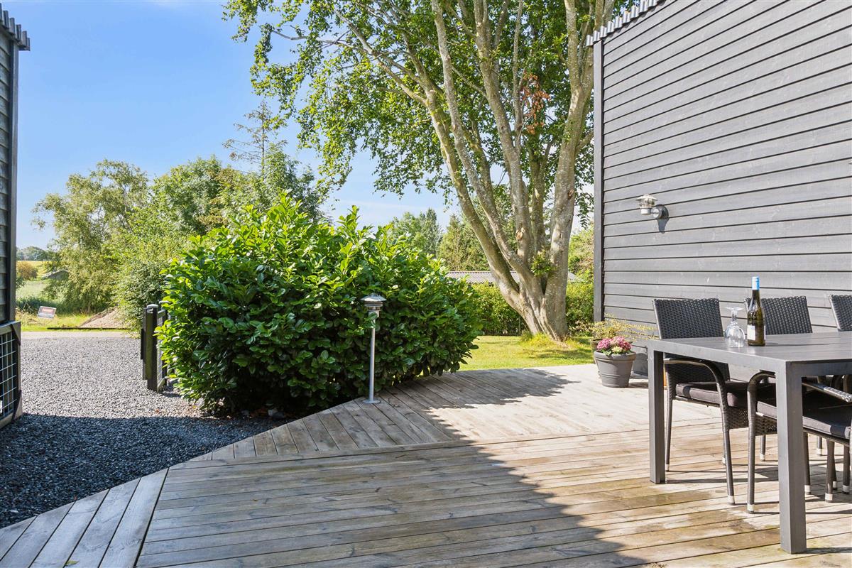 Modern en kindvriendelijk vakantiehuis op 500 meter van Stillinge Strand met omheinde tuin, terrassen en vuurplaats voor een gezinsvakantie vol comfort.