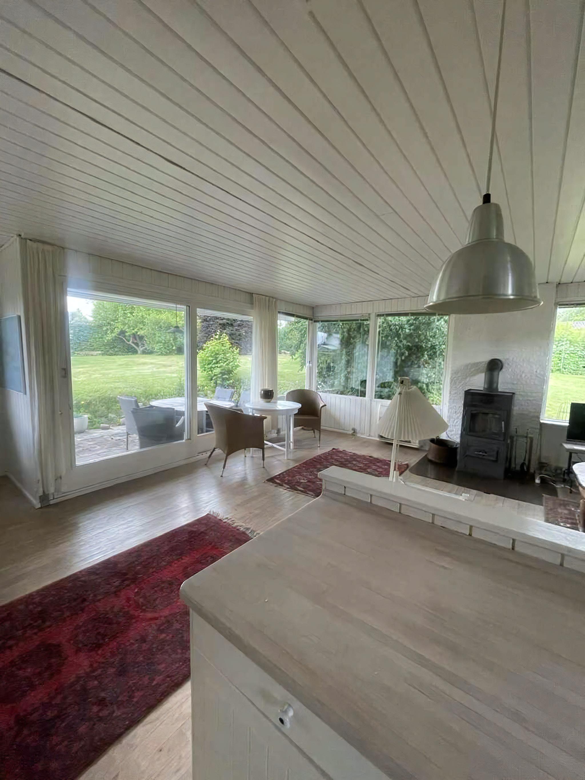 Ruime vakantiewoning van 140 m² met 4 slaapkamers en 6 slaapplaatsen, 2 woonkamers met houtkachel, grote tuin en overdekt terras. Dicht bij Buresø met zwemmen, bos en wandelpaden – ideaal voor een rustige familievakantie.