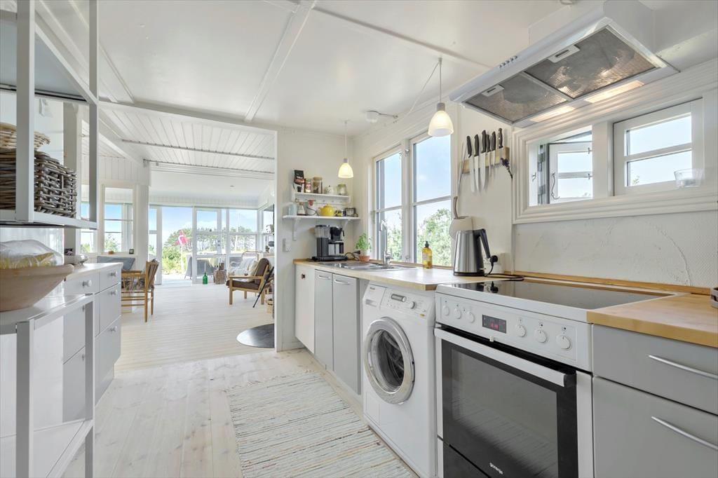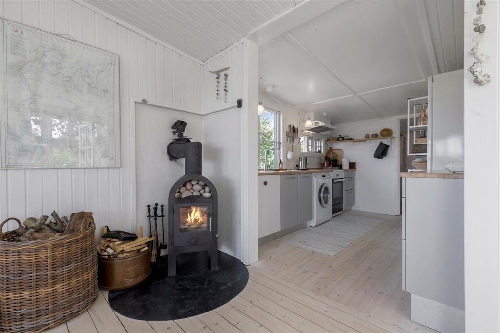 Der mit einem Kaminofen ausgestattete Wohnraum bietet viel Platz für gemütliche Stunden nach einem Tag voller Erlebnisse. Neben dem Wohnraum begrüßt dich der Essbereich mit Panoramaaussicht auf das Meer. Die Küche bietet alles, was du für die Zubereitung eurer Urlaubsmahlzeiten benötigst - inklusive eines Geschirrspülers für einen wirklich entspannten Urlaub.