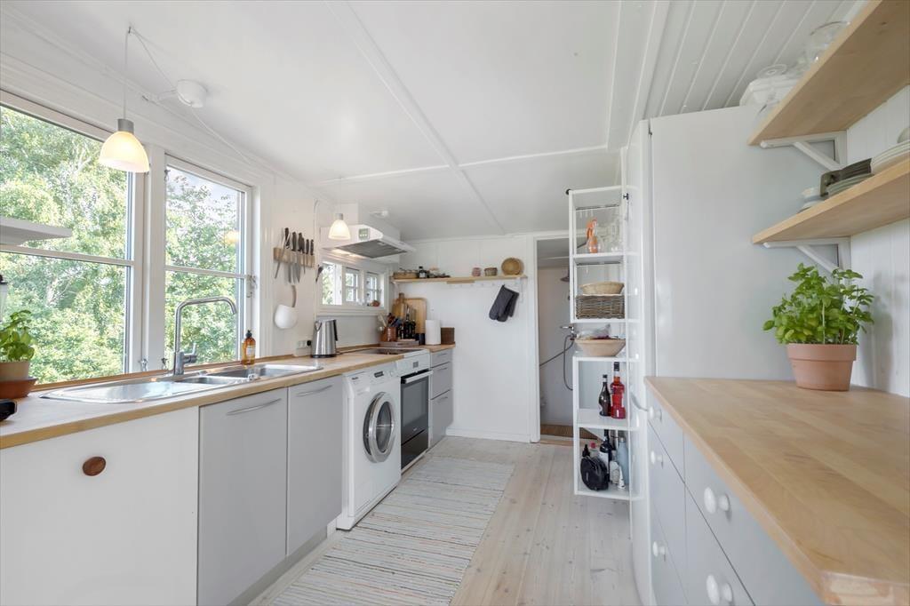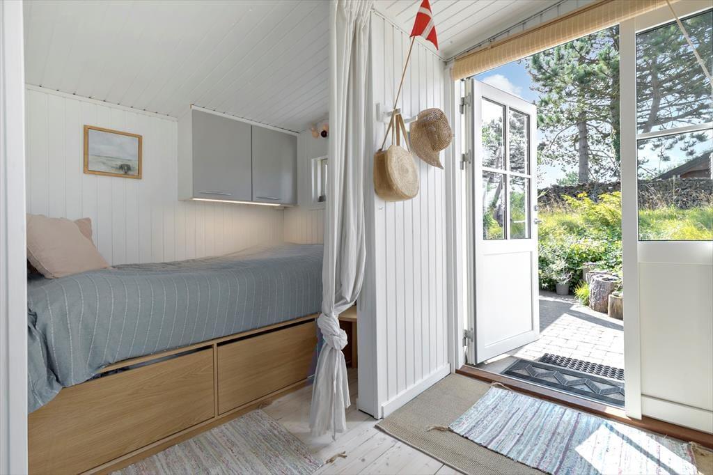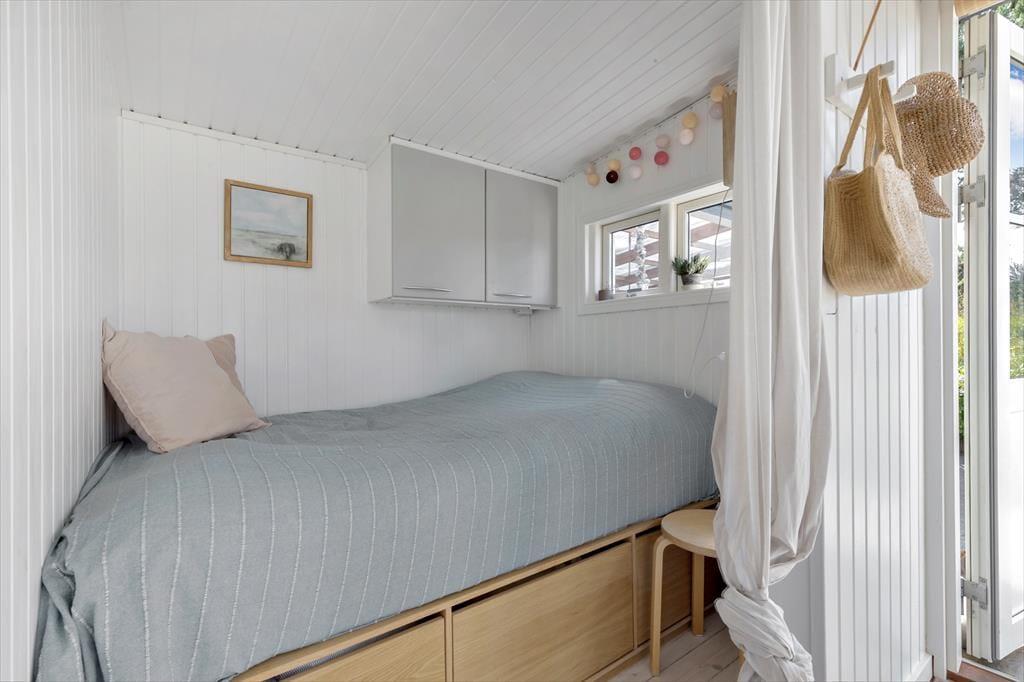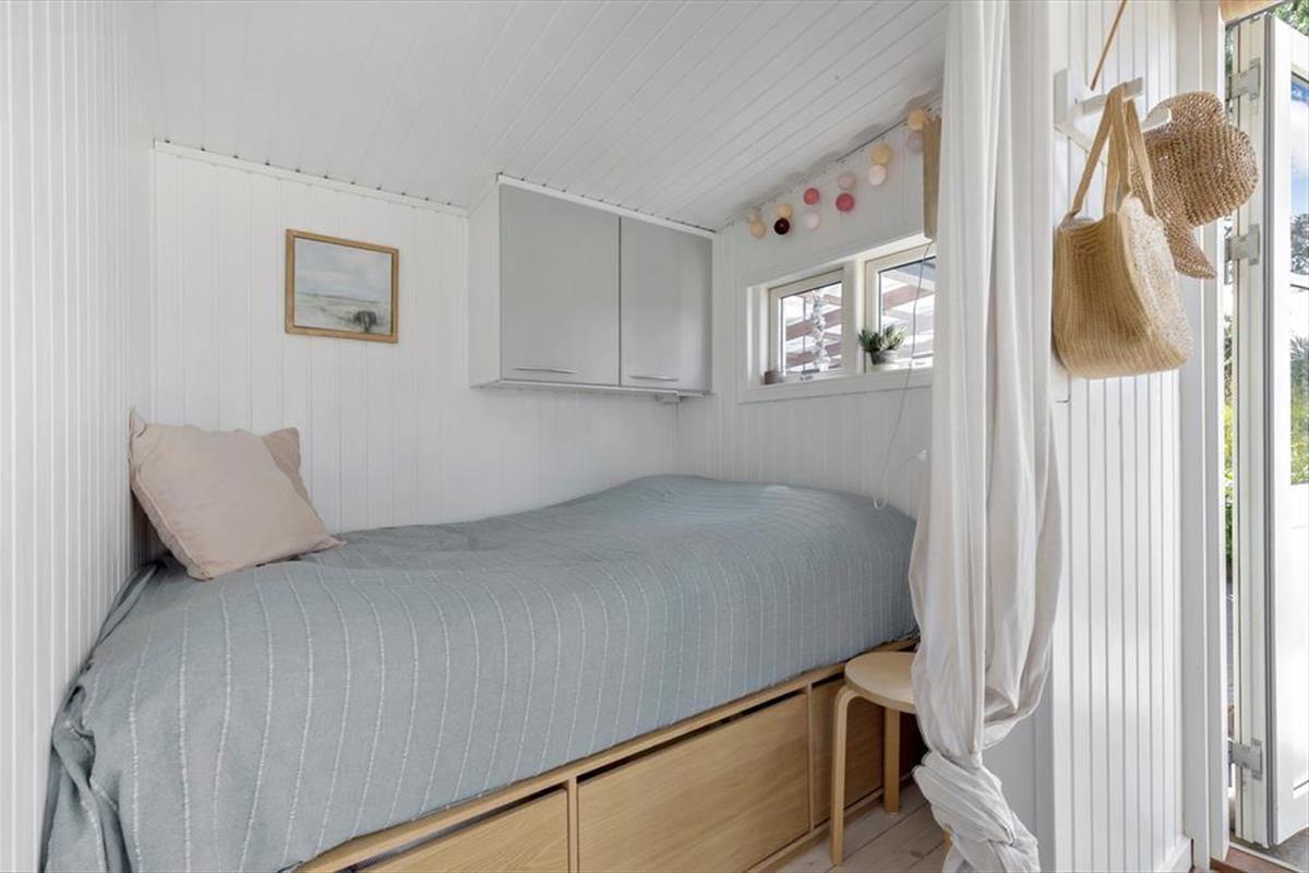 Das Haus verfügt über ein kleines funktionelles Badezimmer sowie mehrere Schlafgelegenheiten. Diese verteilen sich auf einen Schlafraum mit einem Doppelbett, auf ein doppeltes Schlafsofa und auf eine Schlafnische im Wohnraum, in der zwei Personen übernachten können. Gemütlichkeit und Charme vereint dieses Ferienhaus in schönster Weise!