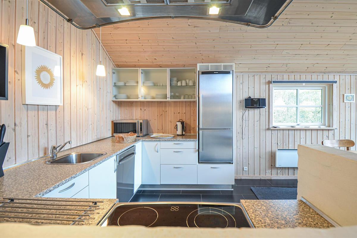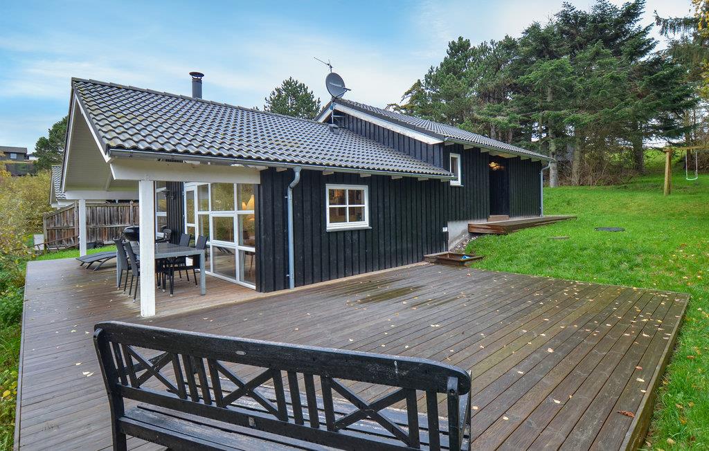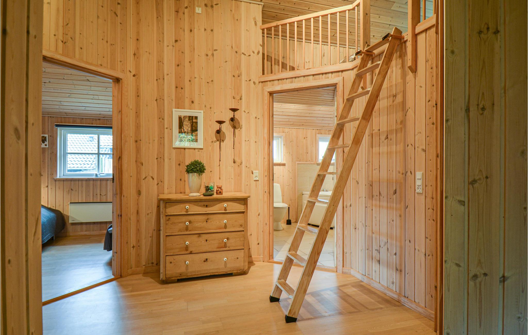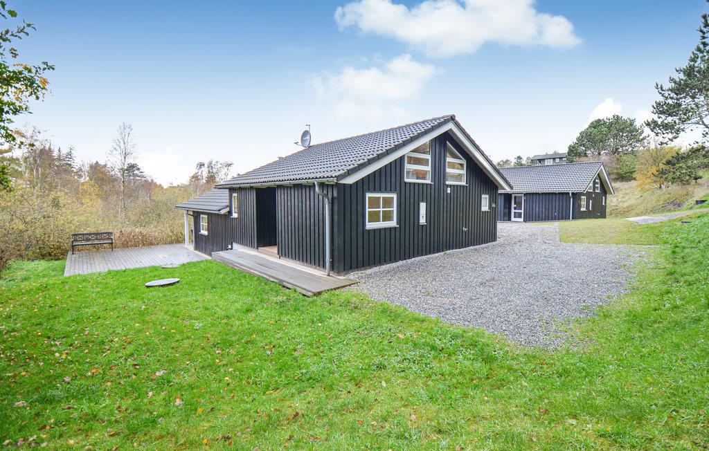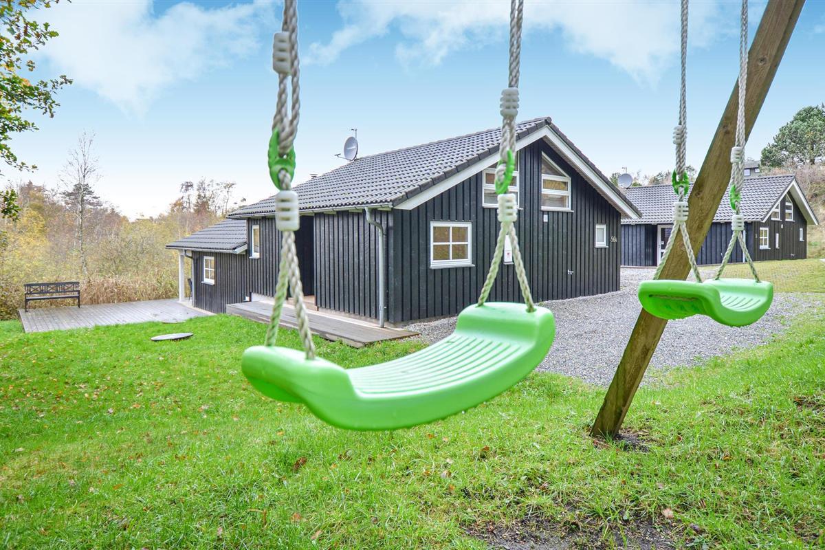 Het gebied bij Helgenæs is een prachtig natuurgebied met een heuvelachtig landschap, kronkelende wegen, uitzicht op zee vanaf de meeste plaatsen en een rijk dierenleven. Het vakantiehuis ligt aan een heel klein meertje en vanaf het terras kunt u genieten van de natuur. Het is mooi en modern ingericht en heeft een open keuken/eetkamer met toegang tot een overdekt terras. De badkamer is erg mooi en heeft onder andere een jacuzzi en een sauna. Door de drie mooie kamers en een open slaapzolder is het huis zeer geschikt voor twee gezinnen. De vuurtoren van Sletterhage is een bezoek waard. De ontvangst van mobiele telefoons kan variëren in het gebied.