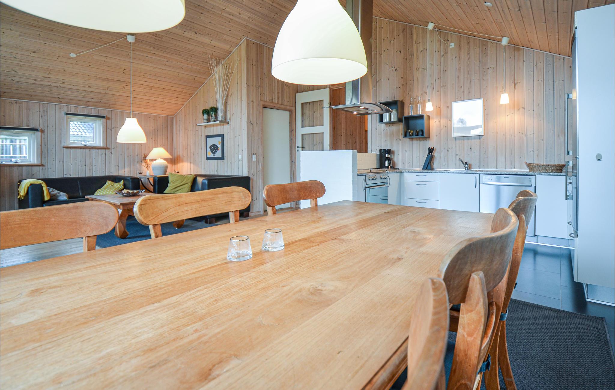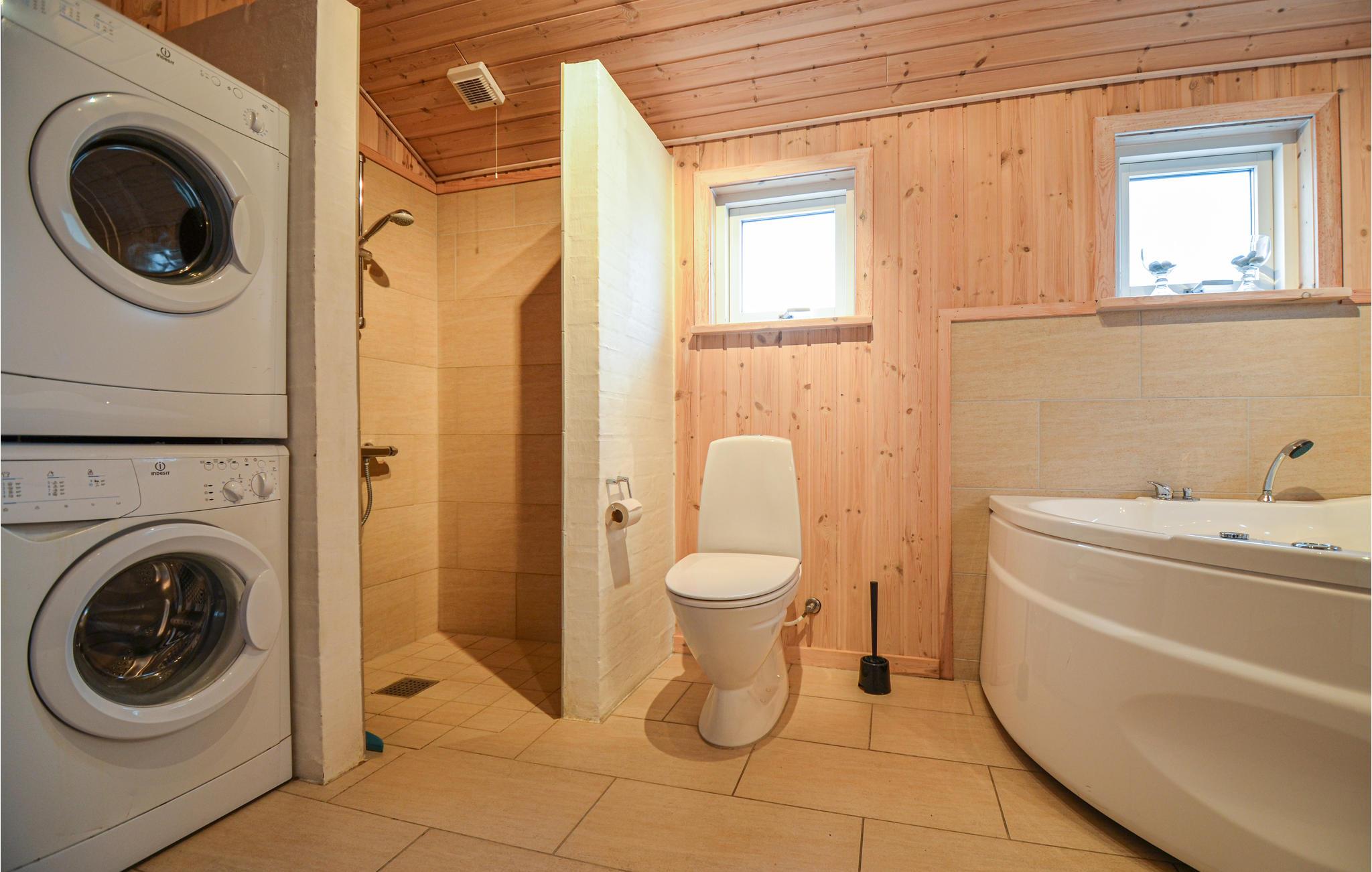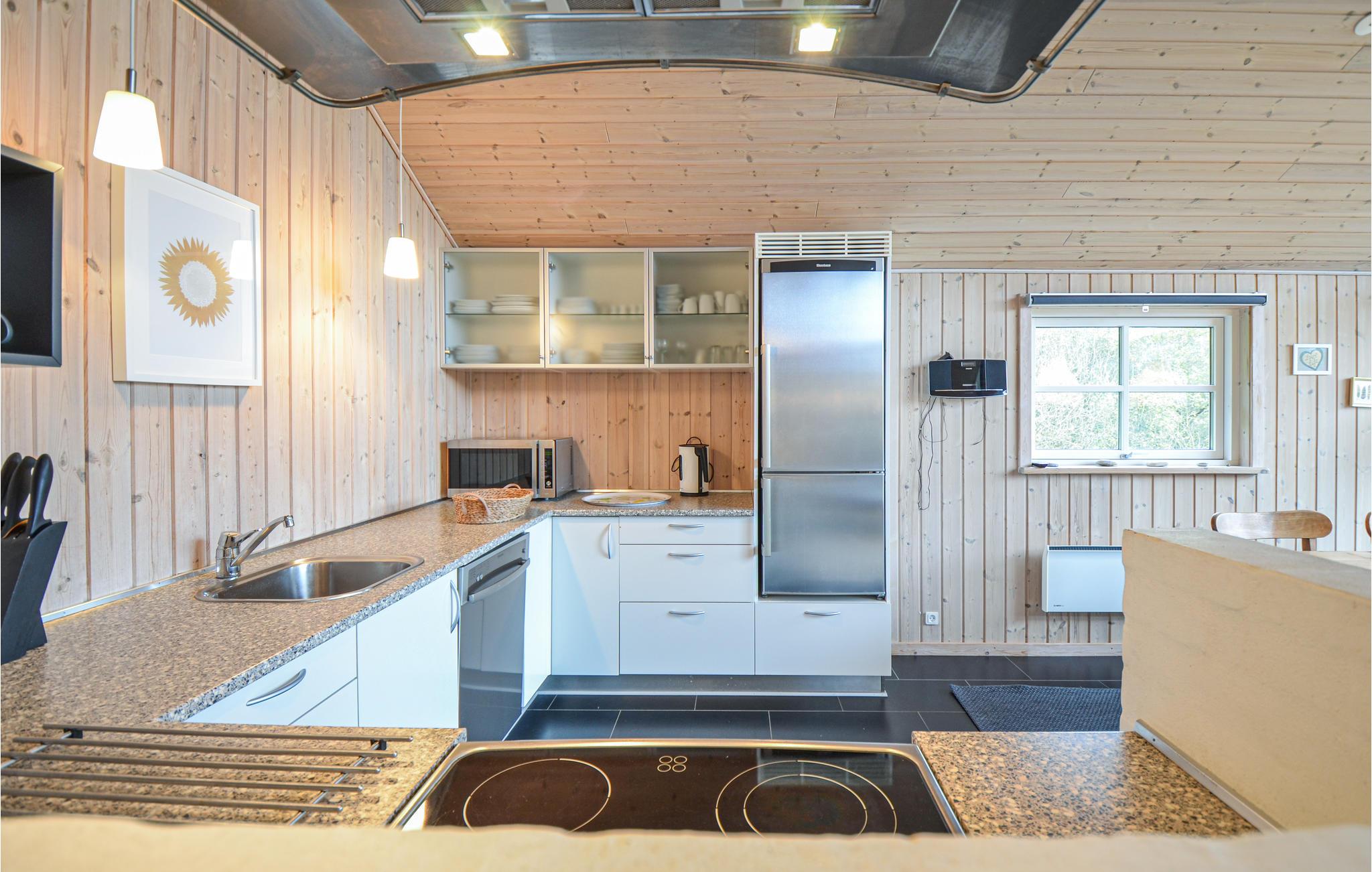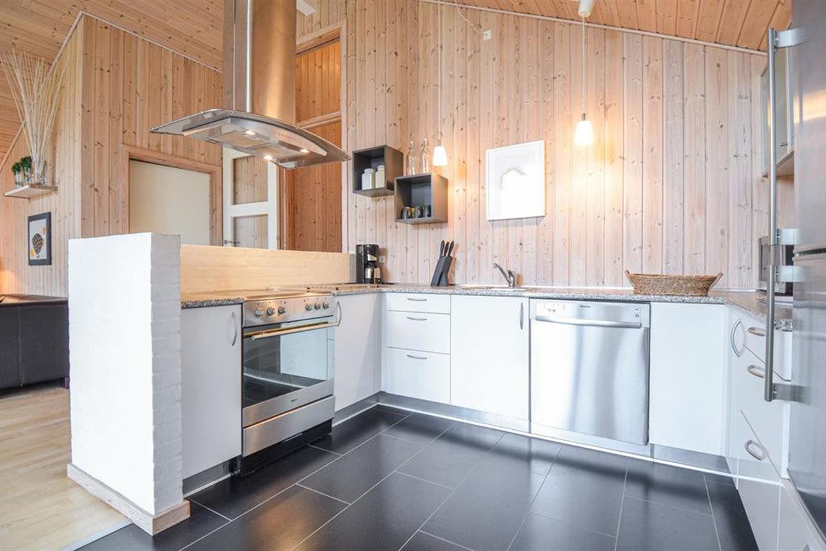 Het gebied bij Helgenæs is een prachtig natuurgebied met een heuvelachtig landschap, kronkelende wegen, uitzicht op zee vanaf de meeste plaatsen en een rijk dierenleven. Het vakantiehuis ligt aan een heel klein meertje en vanaf het terras kunt u genieten van de natuur. Het is mooi en modern ingericht en heeft een open keuken/eetkamer met toegang tot een overdekt terras. De badkamer is erg mooi en heeft onder andere een jacuzzi en een sauna. Door de drie mooie kamers en een open slaapzolder is het huis zeer geschikt voor twee gezinnen. De vuurtoren van Sletterhage is een bezoek waard. De ontvangst van mobiele telefoons kan variëren in het gebied.
