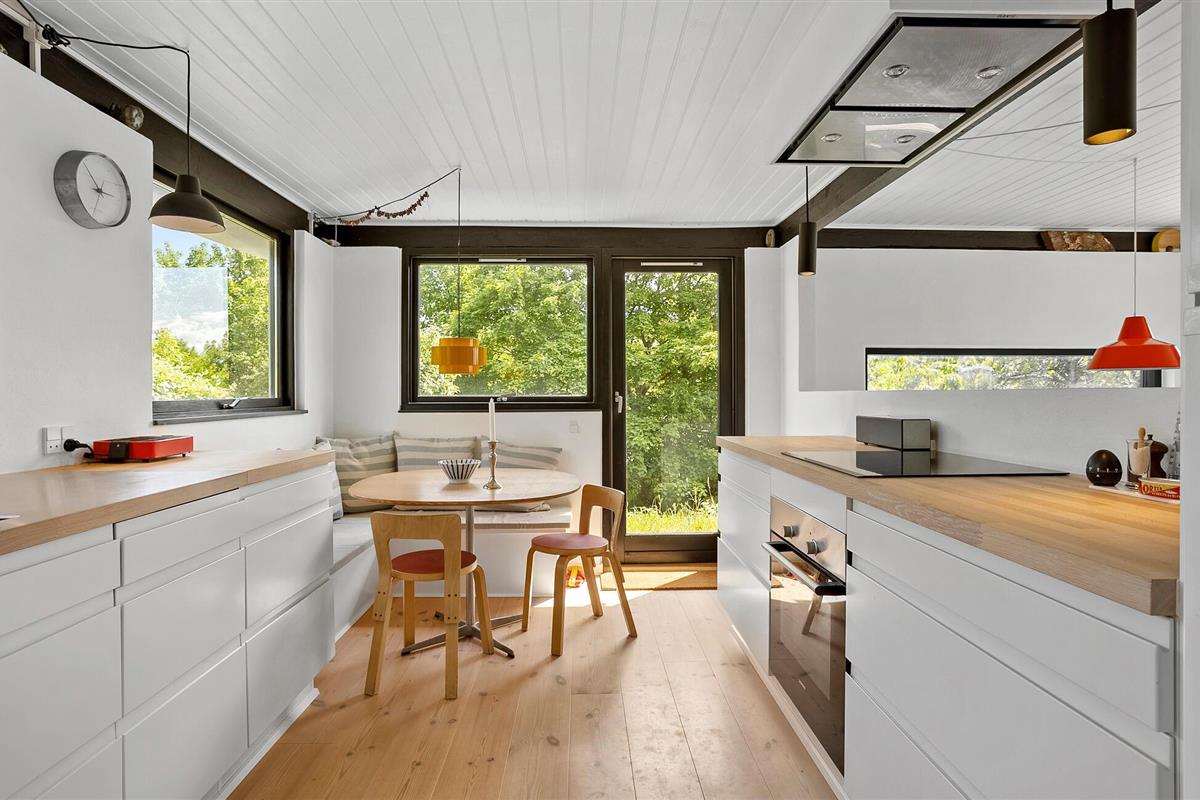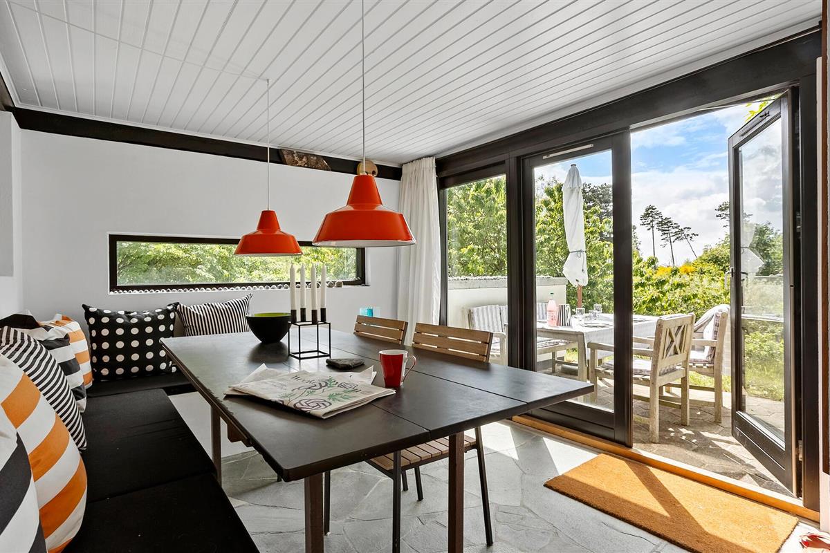 In dit vakantiehuis met een verhoogde ligging kun je een ontspannen vakantie doorbrengen omringd door prachtige natuur. Laat het leven van alledag achter je en verheug je op een pauze met uitzicht, rust en frisse lucht. De lichte woonkamer met ramen van vloer tot plafond biedt een fantastisch uitzicht op het omliggende landschap tot aan de zee. Maak het jezelf gemakkelijk in de zithoek of lees een boek met uitzicht op de natuurlijke omgeving. De inrichting is licht en voorzien van mooie details. Profiteer van de open keuken met royale werkoppervlakken en veel natuurlijk licht om samen avonden te koken. Geniet van je maaltijden aan de gezellige eettafel met directe toegang tot het terras.