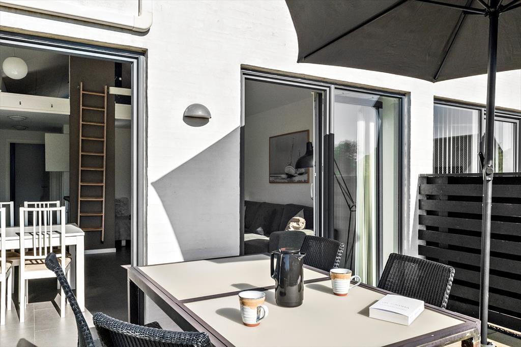 Vom Schlafzimmer aus kommst du direkt auf die nach Osten ausgerichtete Terrasse, um deinen Körper nach einer guten und langen Nacht in der Morgensonne zu strecken, hier schmeckt die Tasse Kaffee am Morgen ganz besonders gut. Später am Tag, wenn ihr von eurem Ausflug in den Wald oder an den Strand nach Hause kommt, lasst ihr euch auf der Westterrasse nieder, genießt die letzten Sonnenstrahlen, die frische Luft und ruhige Atmosphäre von Slettestrand. Wenn ihr gerne geschützt vor der Sonne sitzt, könnt ihr den Sonnenschirm aufstellen, bevor ihr es euch auf der Terrasse gemütlich macht.