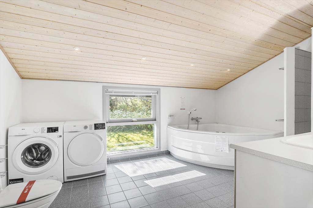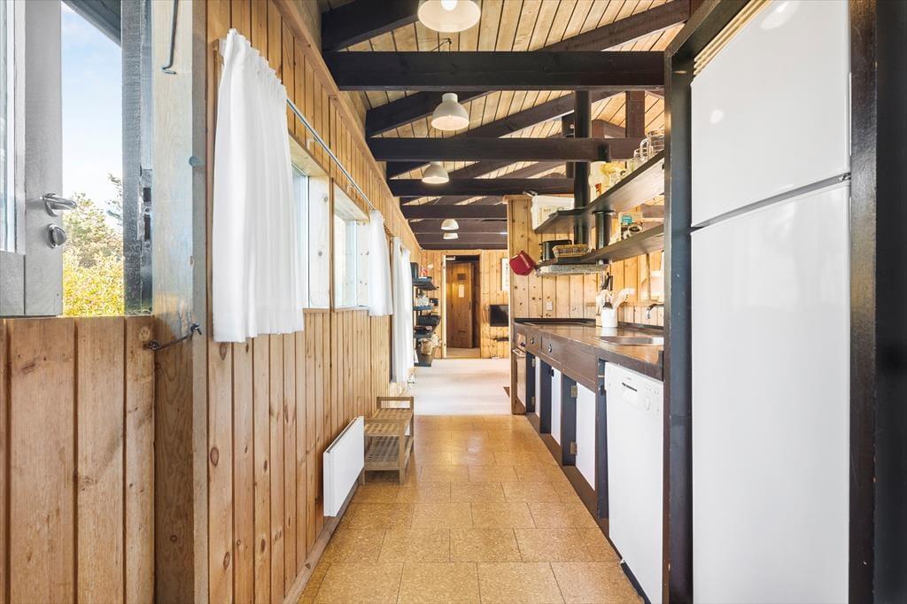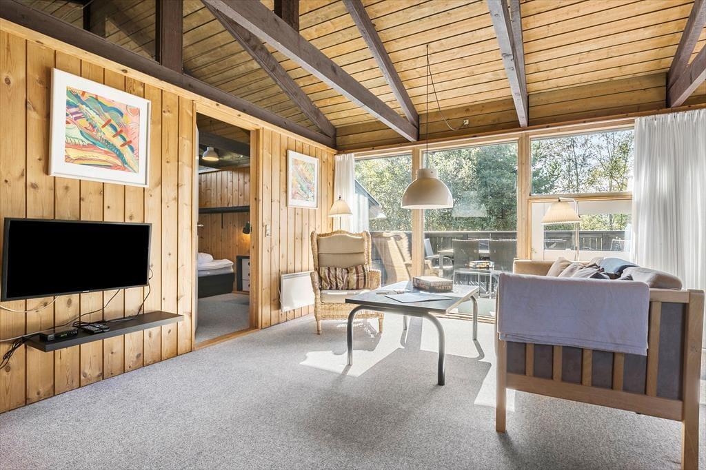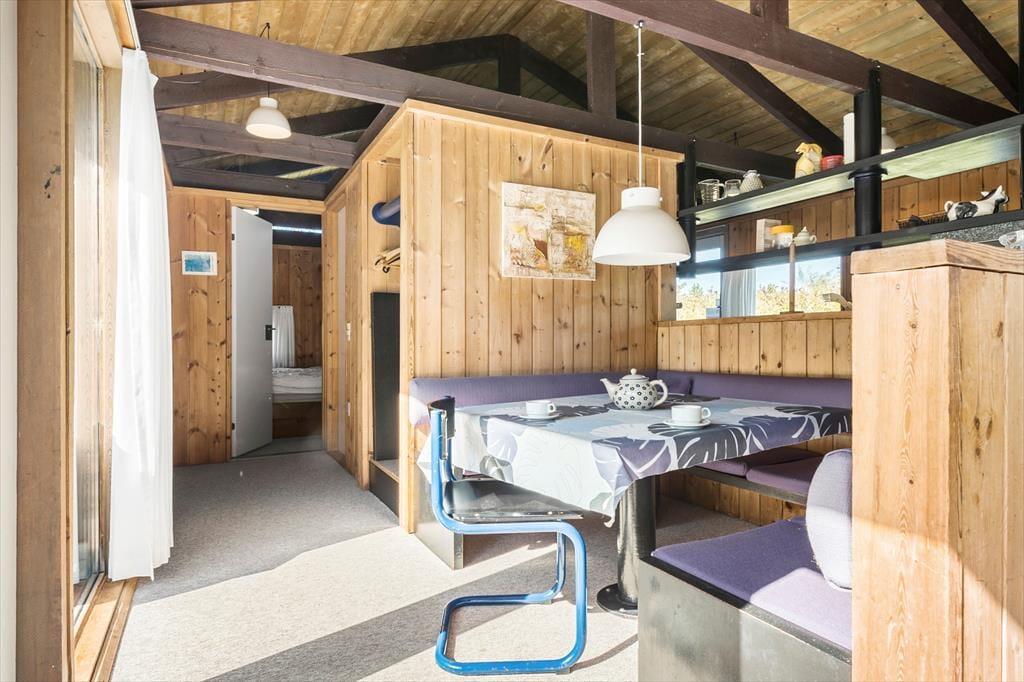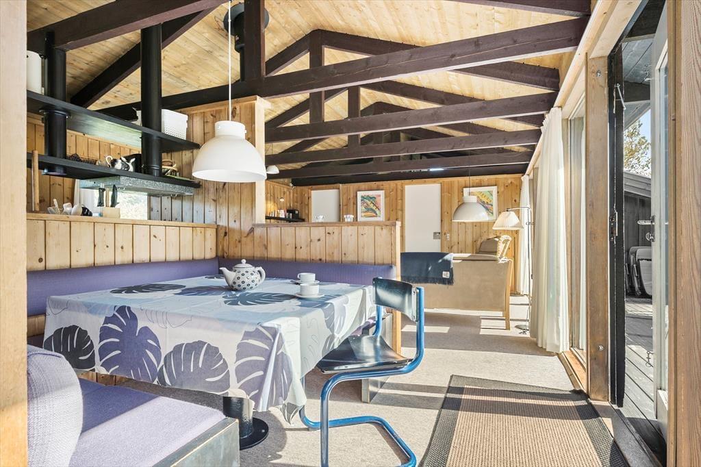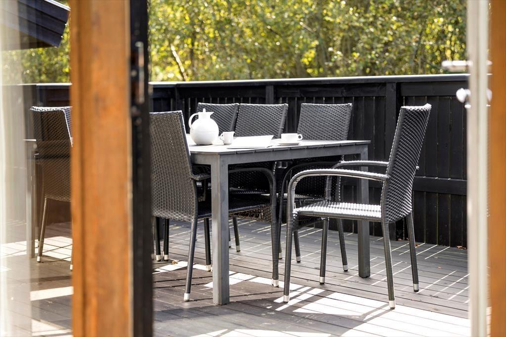 Vom Wohnzimmer haben Sie Zugang zu der großen Terrasse mit Gartenmöbeln, damit Sie das Sommerleben im Windschutz genießen können. Das Ferienhaus liegt auf einem schönen abgegrenzten Naturgrund mit Rasen rundherum. Es gibt Platz fürs Sonnenbaden und Ballspielen. Mit einer kurzen Entfernung entweder zum Strand oder Restaurants ist es einfach die zahlreichen Möglichkeiten bei Slettestrand zu erkunden.