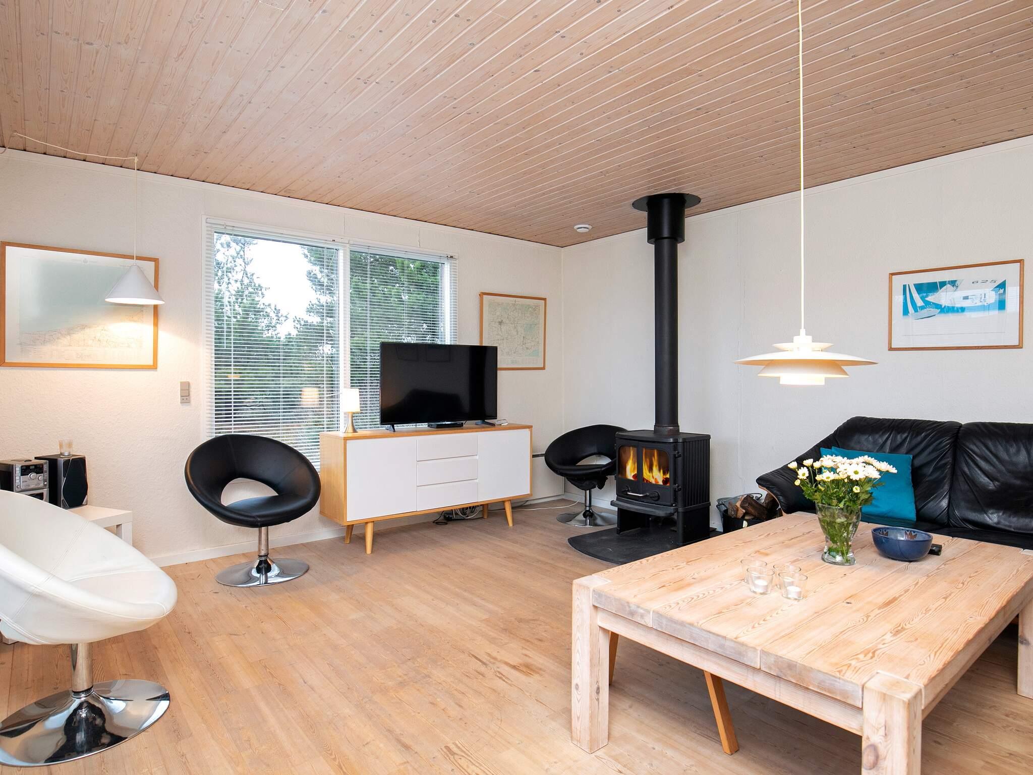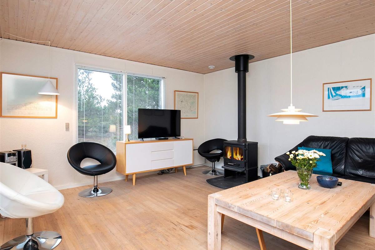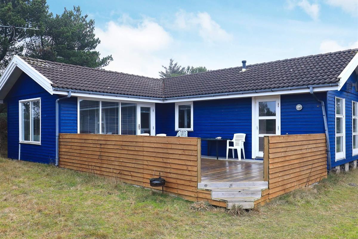 Auf dem gut 1.200 m2 großen Naturgrundstück mit Bäumen und Rasenfläche gibt es viel Platz für spielende Kinder und eine Schaukel für die Kleinen. Es stehen zwei Terrassenflächen zur Verfügung. Das Haus ligt in einem ruhigen Ferienhausgebiet bei Slettestrand, nicht weit von der Nordsee.