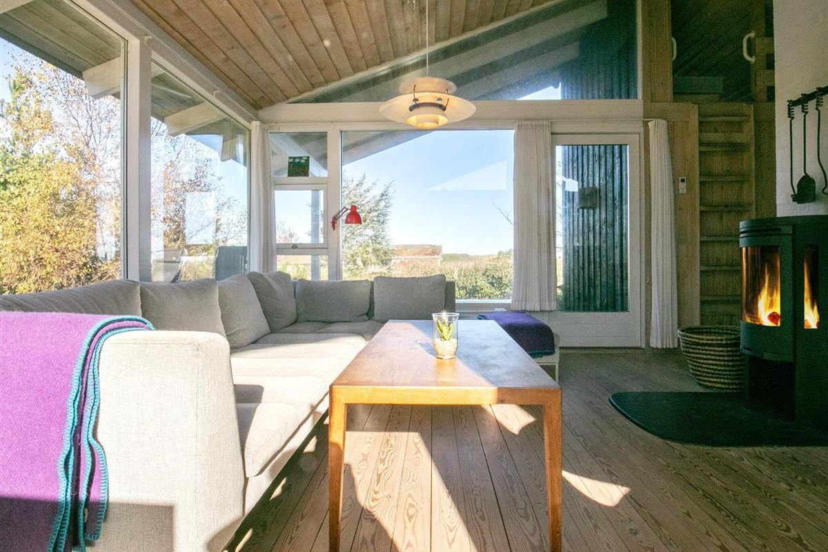 Wohnliches Ferienhaus mit umfassender Ausstattung, darunter auch Swimmingpool, Whirlpool und Sauna für den Badespaß. Liegt vorne in der ersten Dünenreihe, keine 100 m vom herrlichen Nordseestrand bei Slettestrand entfernt.
