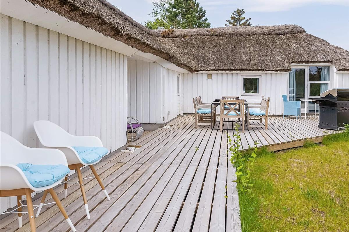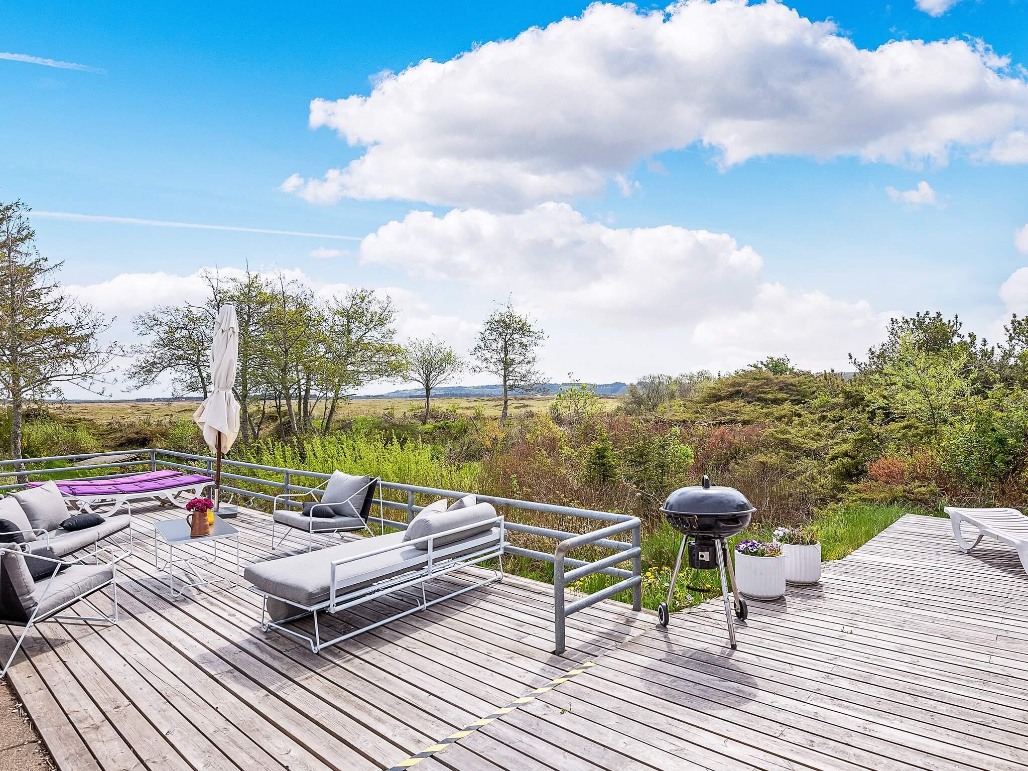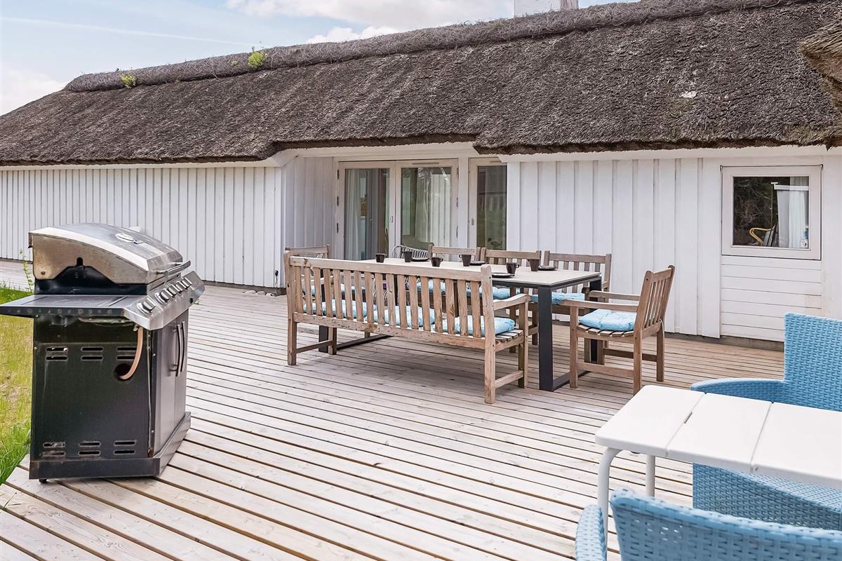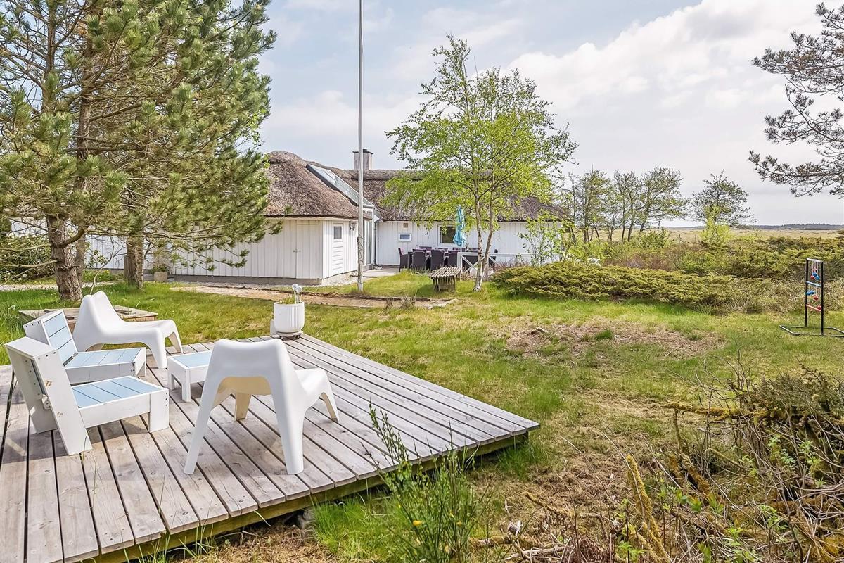 Das Ferienhaus befindet sich auf einem 2000 m² großen Naturgrundstück. Es gibt eine 170 m² große offene Terrassenfläche mit viel Sonne und Schatten. Auf der Terrasse befinden sich Loungemöbel. Ein Holzkohle- und ein Gasgrill für einen gemütlichen Grillabend stehen zur Verfügung. Im Garten gibt es außerdem einen Sandkasten für Die Kleinen.