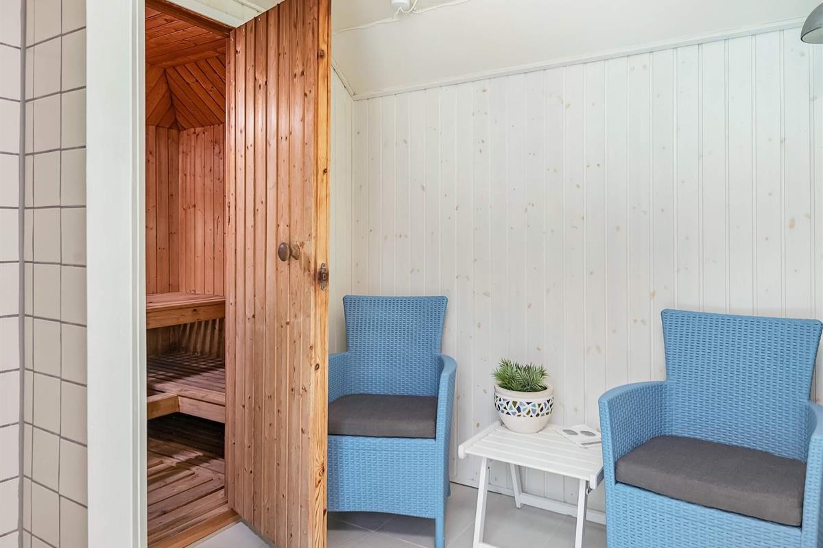 Die Küche ist mit vier Induktionskochfeldern, einem Heißluftofen, einer Mikrowelle und einem Geschirrspüler ausgestattet. Es gibt zwei Badezimmer mit Duschen. Entspannen Sie in der Sauna.