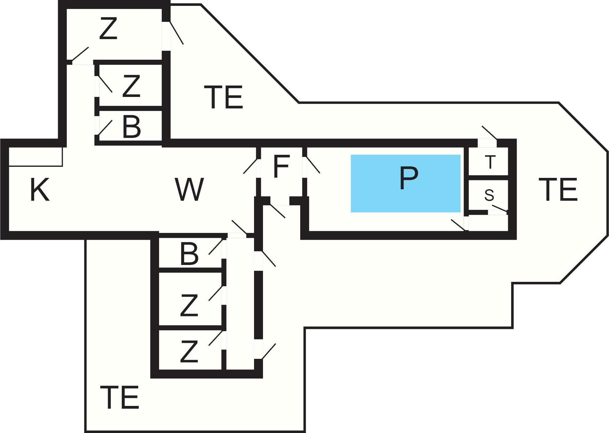 4 Schlafz.: (1DB)+(1DB)+(2B)+(2B), Kinderbett