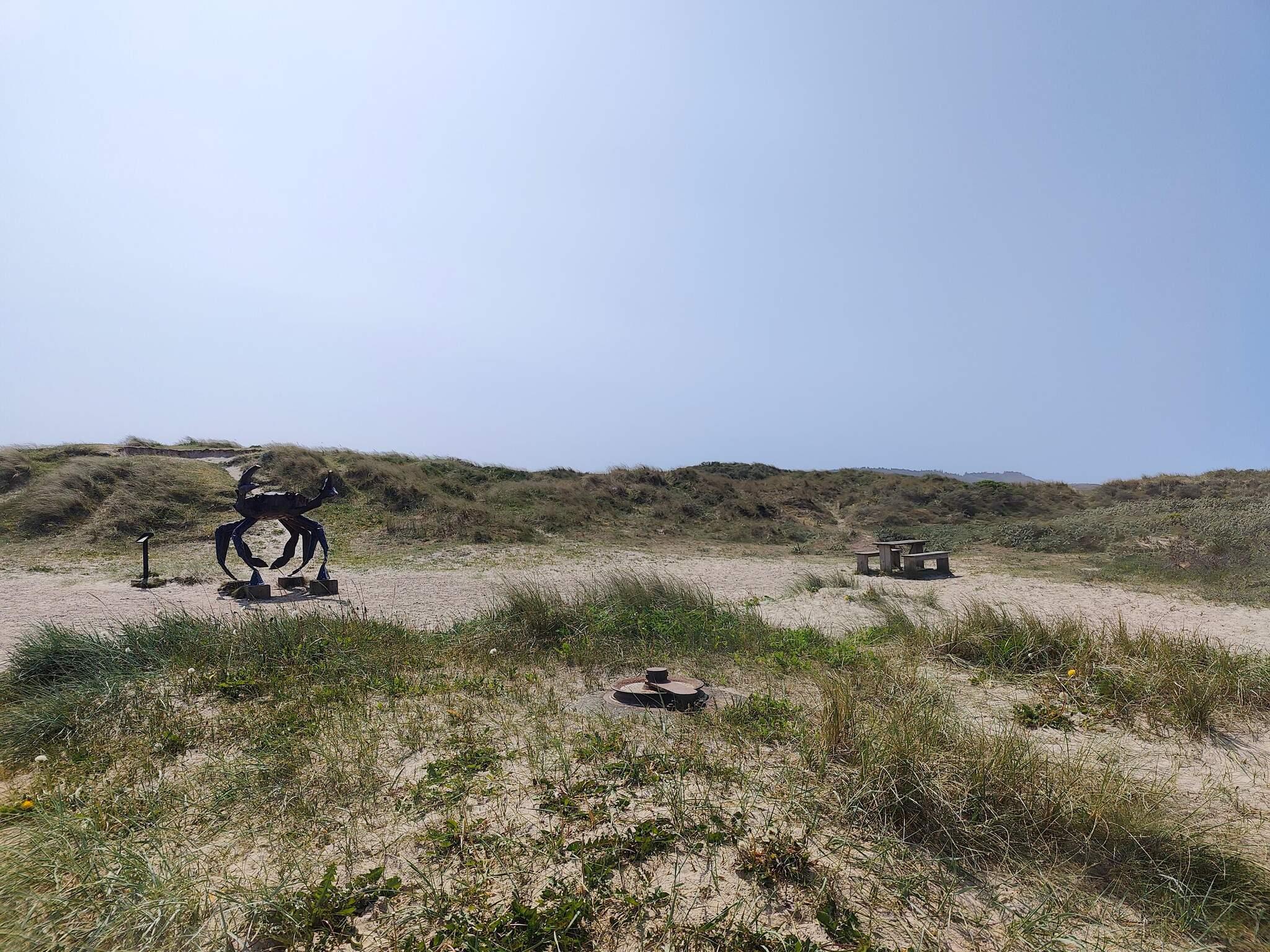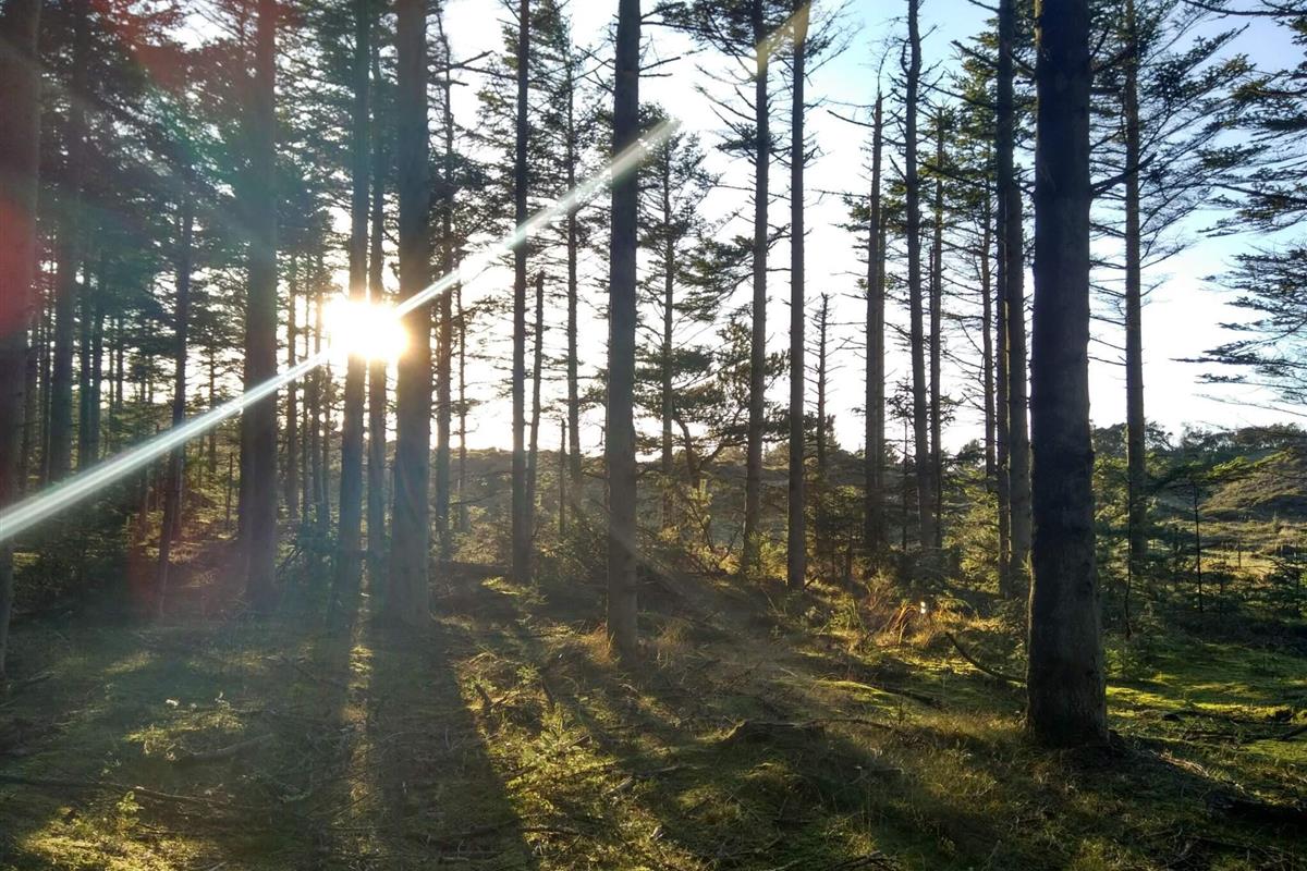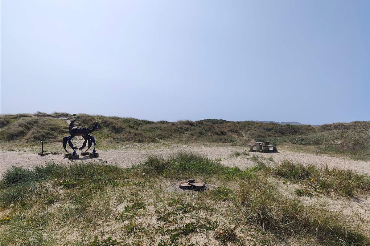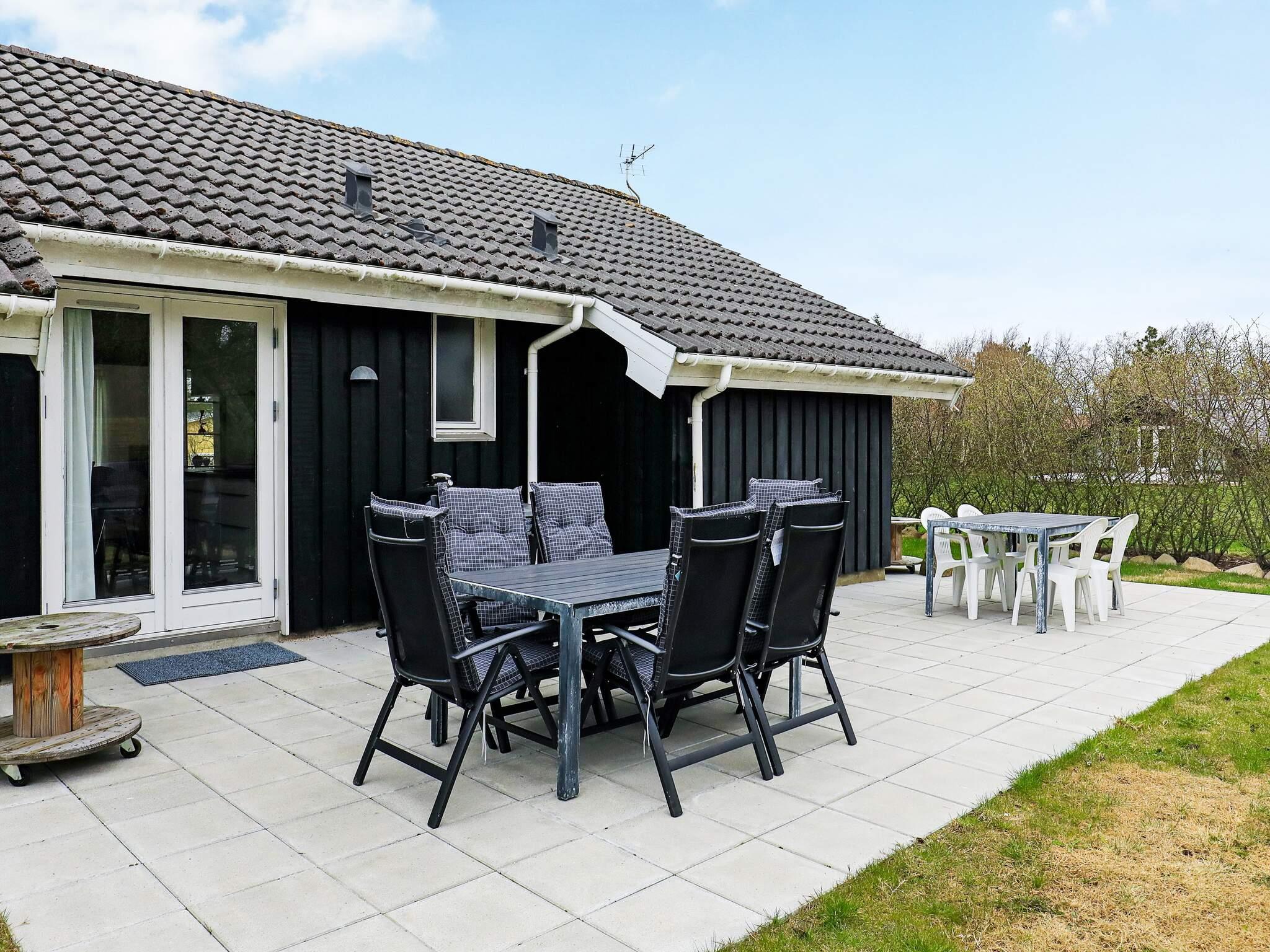 Das Grundstück ist 900 m² groß und bietet Rasenfläche und Sandkasten sowie eine Terrasse rund um das Haus, wo man stets ein schönes Plätzchen im Freien findet. Das Haus wird mittels Wärmepumpe, Holzofen und elektrischer Heizung erwärmt. Es liegt in einem Ferienhausgebiet, nicht weit vom Strand und zentral im Ort.