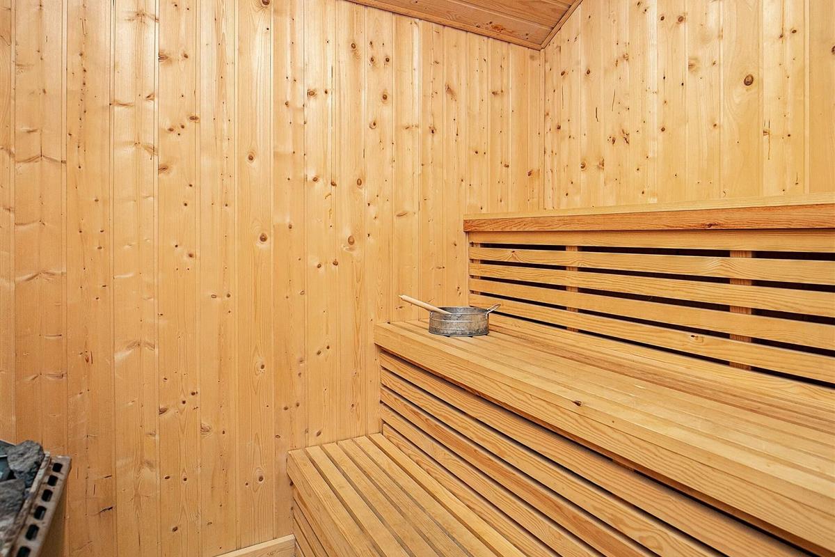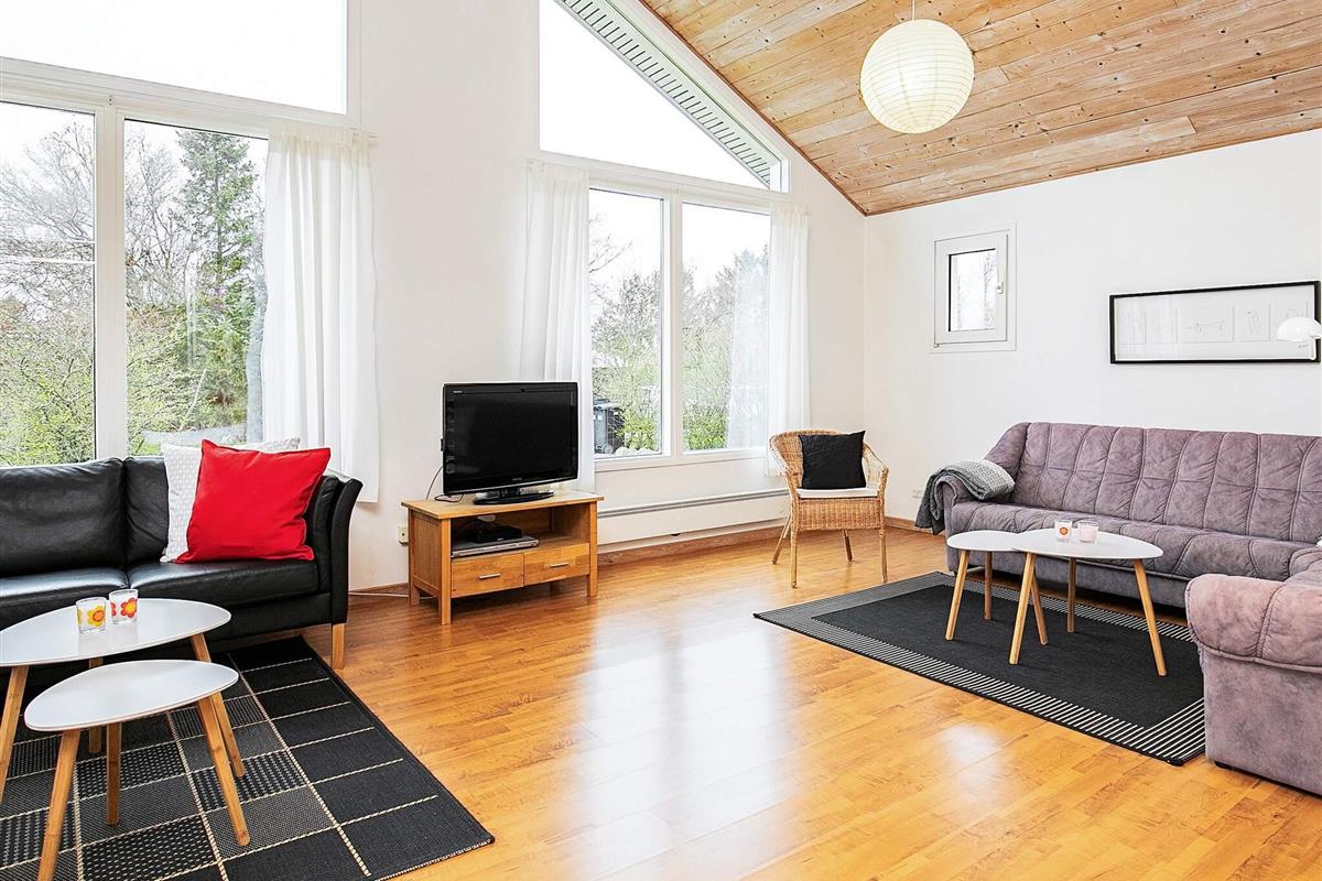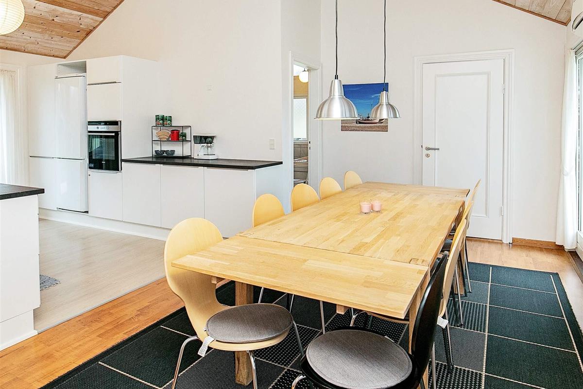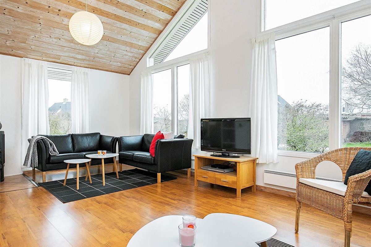 Es verfügt über drei Schlafzimmer sowie einen großen Hems mit zwei Schlafplätzen. Im großen Wohnzimmer mit komfortablen Möbeln gibt es TV mit dänischen und deutschen Sendern, einen DVD-Spieler sowie eine Stereoanlage mit CD. Das eine der beiden Badezimmer verfügt über Whirlpool und Sauna. Die Küche ist gut ausgestattet, u.a. mit Cerankochfeldern, Spülmaschine und Mikrowelle. Waschmaschine und Trockner sind ebenfalls vorhanden.