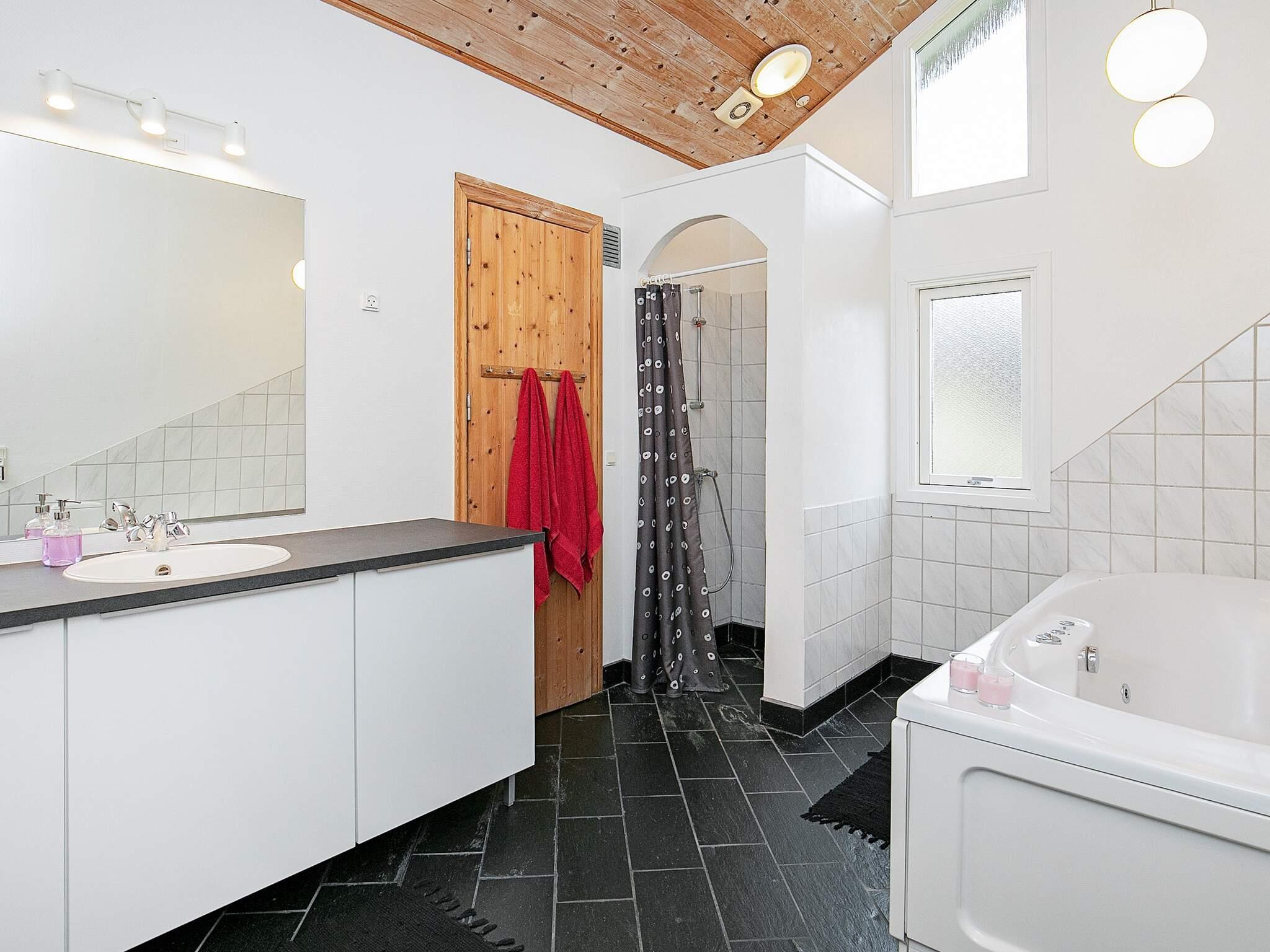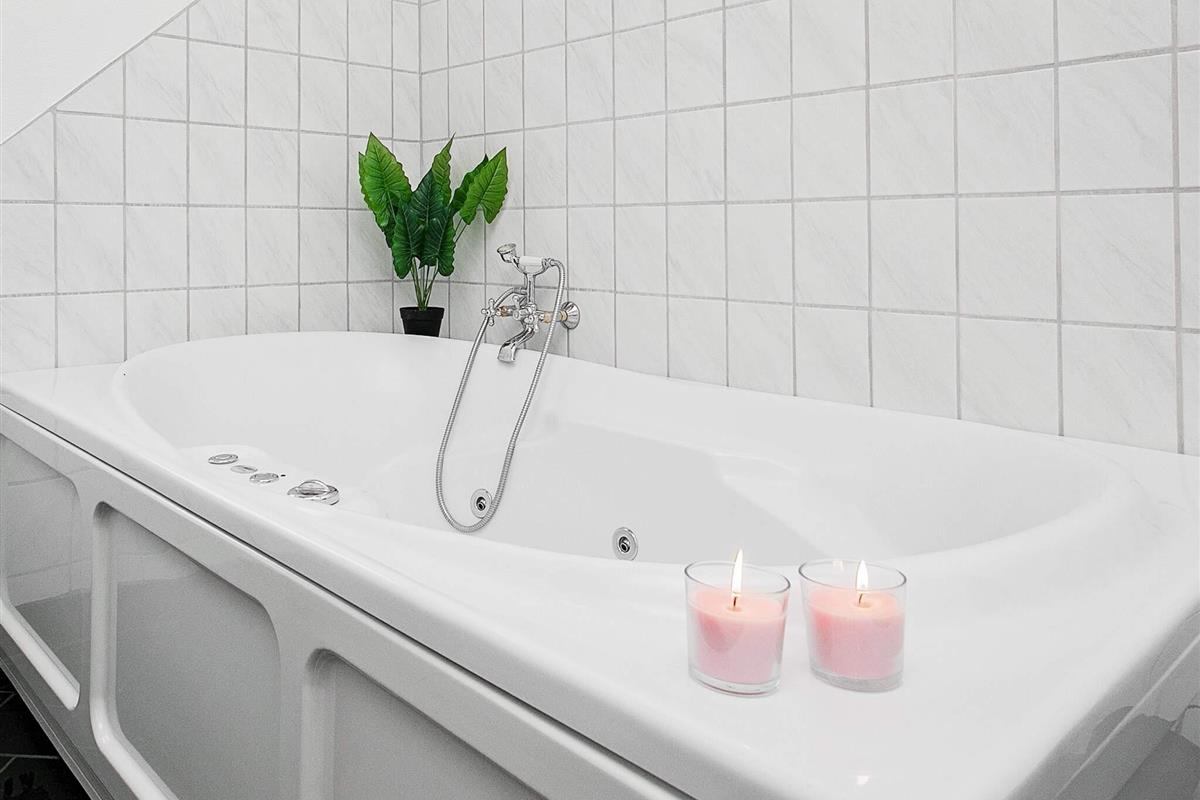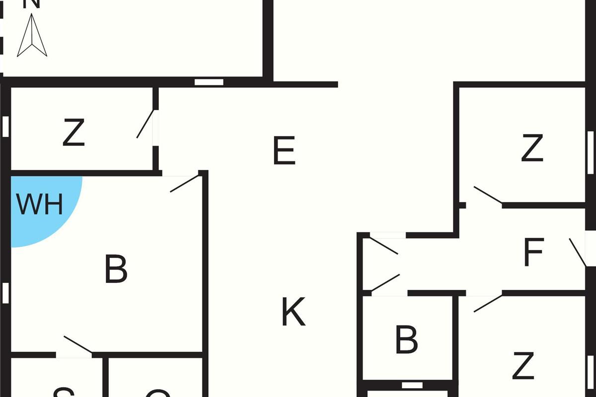 Es verfügt über drei Schlafzimmer sowie einen großen Hems mit zwei Schlafplätzen. Im großen Wohnzimmer mit komfortablen Möbeln gibt es TV mit dänischen und deutschen Sendern, einen DVD-Spieler sowie eine Stereoanlage mit CD. Das eine der beiden Badezimmer verfügt über Whirlpool und Sauna. Die Küche ist gut ausgestattet, u.a. mit Cerankochfeldern, Spülmaschine und Mikrowelle. Waschmaschine und Trockner sind ebenfalls vorhanden.