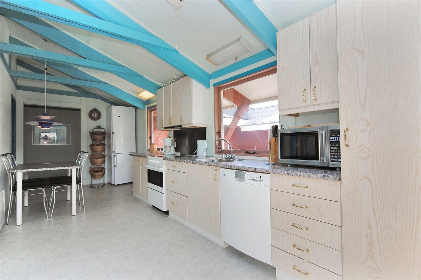 De keuken is uitgerust met koelkast Er zijn 4 keramische kookplaten, heteluchtoven, magnetron en vaatwasser.