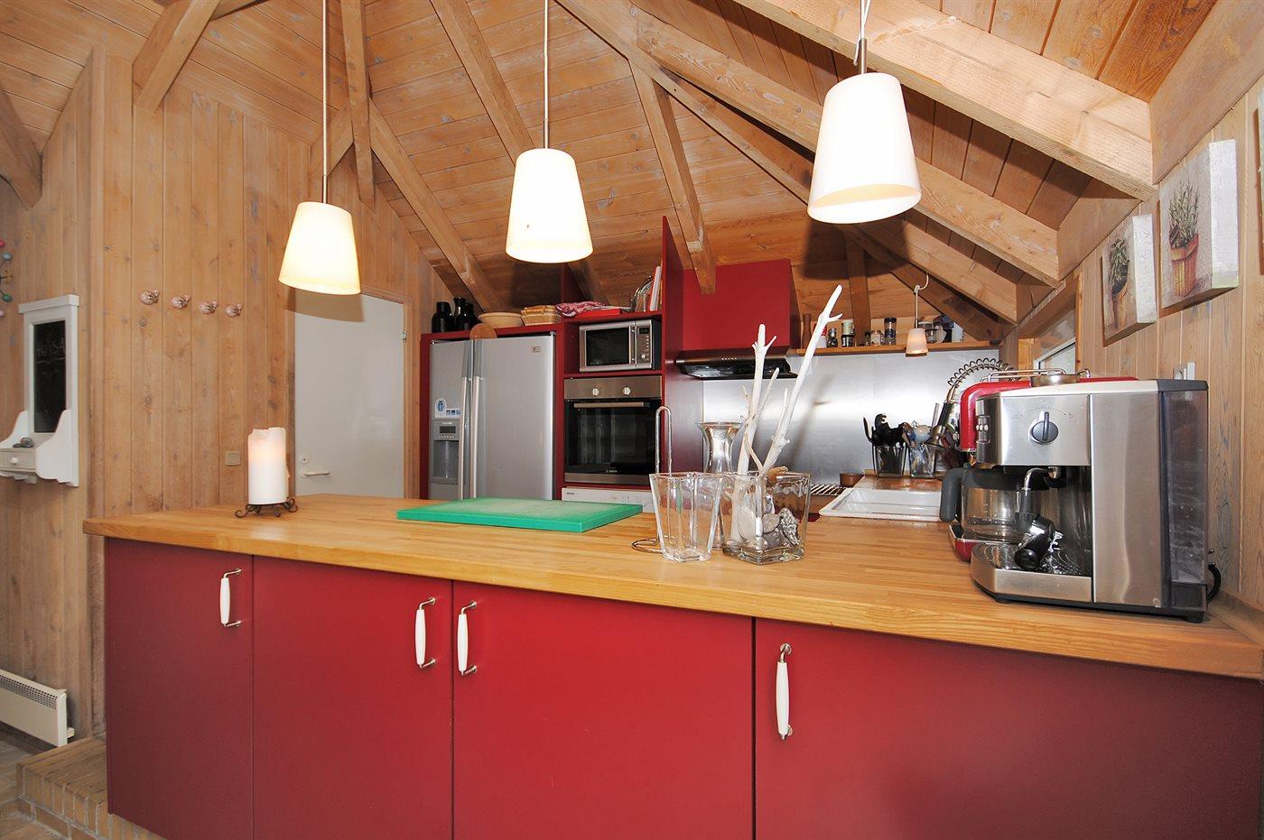 De keuken is uitgerust met amerikaanse koelkast Er zijn 4 keramische kookplaten, heteluchtoven, magnetron en vaatwasser.