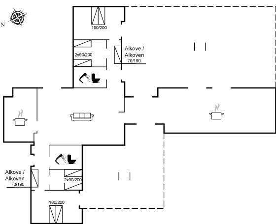 Er zijn in totaal 4 slaapkamers. De slaapplaatsen zijn als volgt verdeeld: 4 slaapplaatsen in tweepersoonsbedden. 4 slaapplaatsen in eenpersoonsbedden. 2 slaapplaatsen in alkoof. 2 van deze slaapplaatsen bevinden zich in de huiskamer.