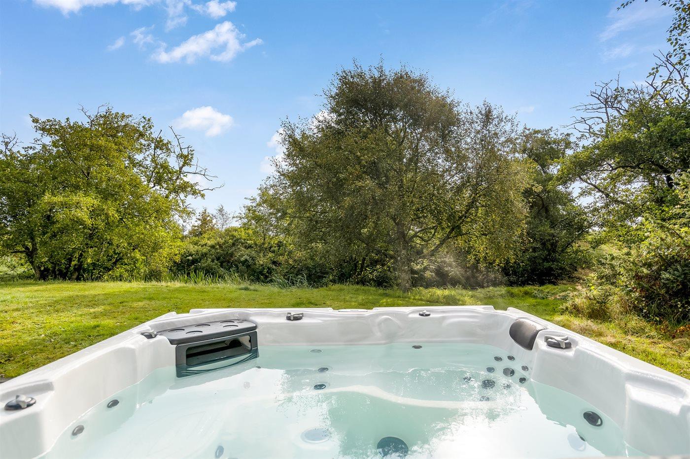 Het buitenbubbelbad (standwater) biedt ontspanning aan 6 personen.