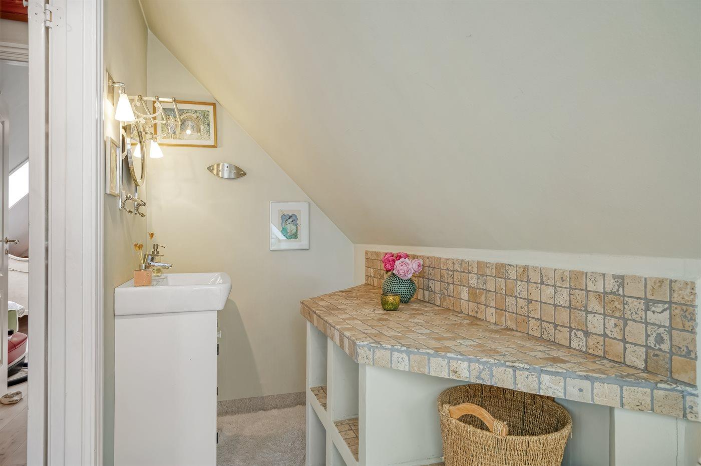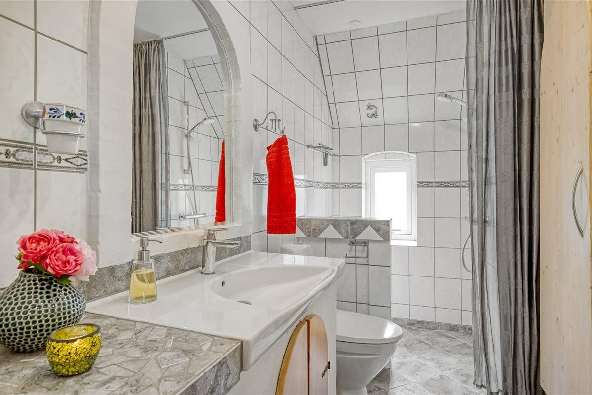 Er is 1 badkamer met douchehok en 2 toiletten, waarvan 1 gastentoilet. Er is vloerverwarming in 1 badkamer.