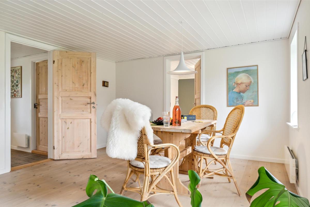 Kom aan in Slettestrand en betreed dit mooie en comfortabele huis. Het huis straalt van binnen en creëert een heerlijke feel-good sfeer met zijn mooie houten vloer, ramen van vloer tot plafond en goed onderhouden meubels. Maak het jezelf gemakkelijk op de zithoek, kijk door de ramen naar het prachtige landschap of tover heerlijke maaltijden met je geliefden tevoorschijn in de keuken. Breng de zonnige uren door op het terras of speel in de tuin en maak plannen voor je uitstapjes en activiteiten.