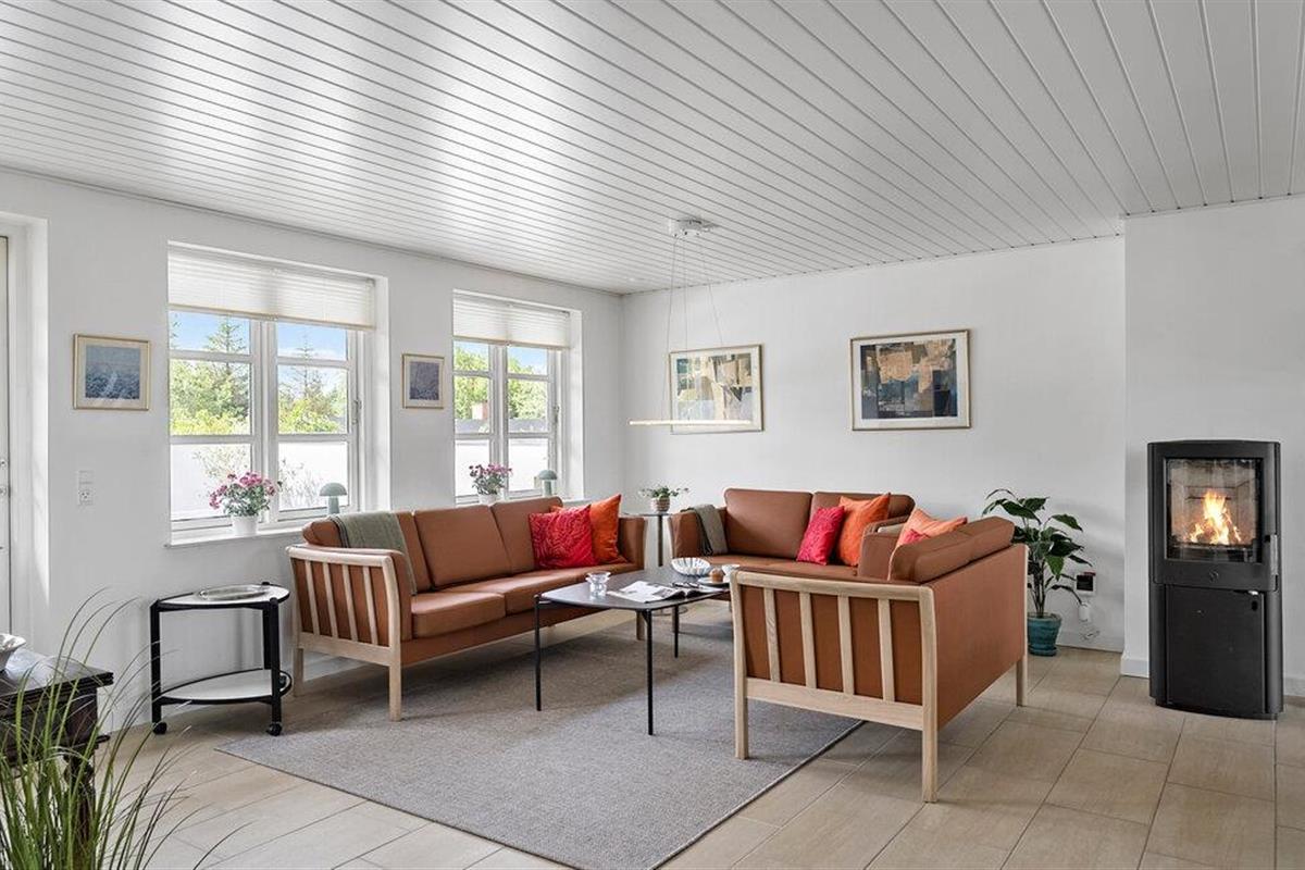 Breng onvergetelijke uren door in dit klassieke rietgedekte huis, dat natuurlijke materialen combineert met een tijdloze en gezellige esthetiek die perfect past bij het omringende duin- en heidelandschap. Geniet van het fenomenale uitzicht door de prachtige schuiframen, die het warme daglicht binnenlaten. Ontspan op de comfortabele leren banken, luister naar je favoriete muziek of kom samen voor een filmavond. Op kille dagen kun je jezelf verwennen met de behaaglijke warmte van de sauna of een vuurtje stoken in de houtkachel en achterover leunen met een warm drankje.