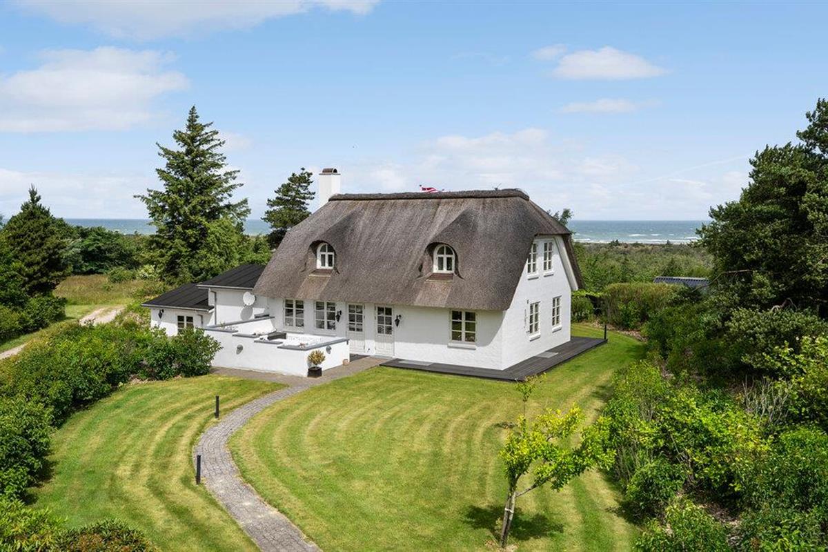 Luxe rietgedekt vakantiehuis met sauna, panoramisch zeezicht en dichtbij Jammerbucht strand.