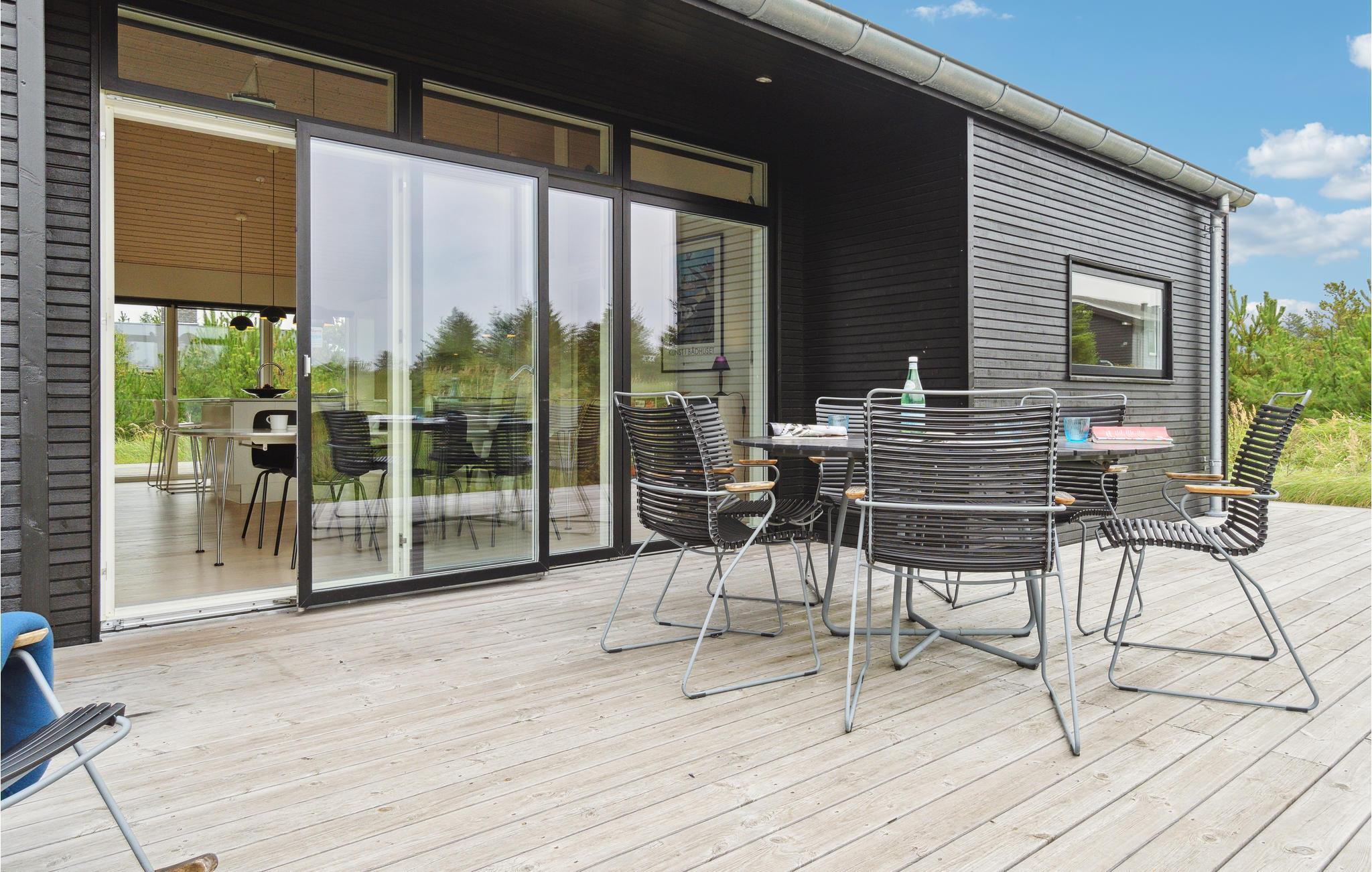 Luxe vakantiehuis nabij het strand van Slettestrand met moderne keuken, terras en prachtige natuurlijke omgeving.