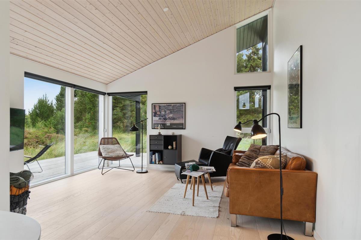 Dit gezellige en luxe vakantiehuis ligt op een bebost perceel vlakbij het prachtige strand van Slette.