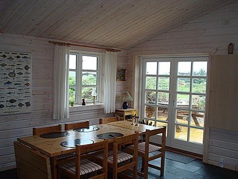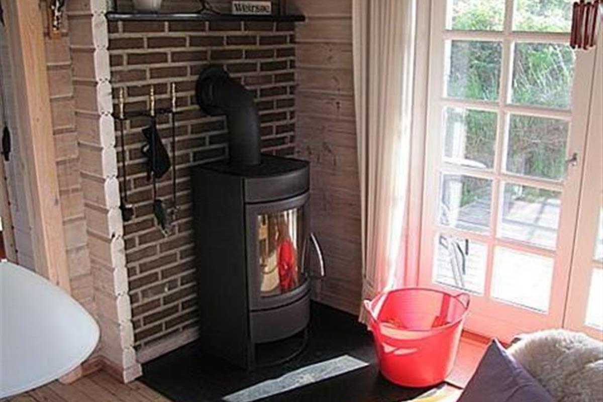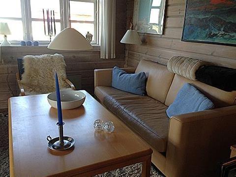 Det sidste rum i dette hus er stuen, som er i forbindelse med køkkenet. Her er plads til at hele familien kan nyde varmen ved brændeovnen, spille et kortspil ved det store sofabord eller se en god film i tv'et. Både fra køkkenet og stuen er der store terrassedøre ud på terrassen. Igennem hele huset er her en masse fine detaljer og brugskunst, som får huset til at føles som et rigtigt sommerhus. Alt i alt er dette et skønt hus, som vil skabe rammerne får en god ferie ved Slettestrand.