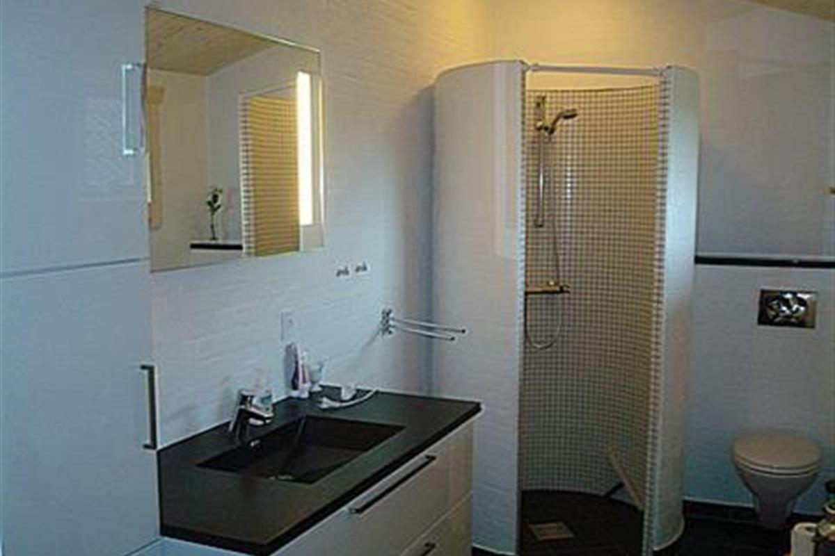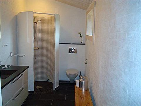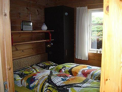 Når man træder ind i entréen, bliver man mødt af et lyst rum, som går op i kip. I entréen finder man døren ind til husets badeværelse, hvilket er dejlig rummeligt. På den anden side finder man det første af husets tre soveværelser. Dette er et hyggeligt rum, med en dobbeltseng. De to andre soveværelser er begge forsynet med en køjeseng og et skrivebord, hvor man kan sidde og skrive et postkort til dem derhjemme.