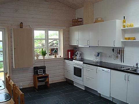 Huset har et stort og lyst køkken, hvor der er en masse bordplads til at tilberede familiens mad på. Endvidere er der et stort spisebord, som kan foldes ud, hvis man har inviteret spisende gæster. I dette store køkken er her også en sovesofa, som kan omdannes til ekstra soveplads. Dette køkken er noget helt for sig selv, da loftet går i kip og der er ovenlys direkte ned på køkkenbordet. Sommerdagene hvor solen står højt, giver de skønneste stråler ind i køkkenet, som giver en masse frisk energi.