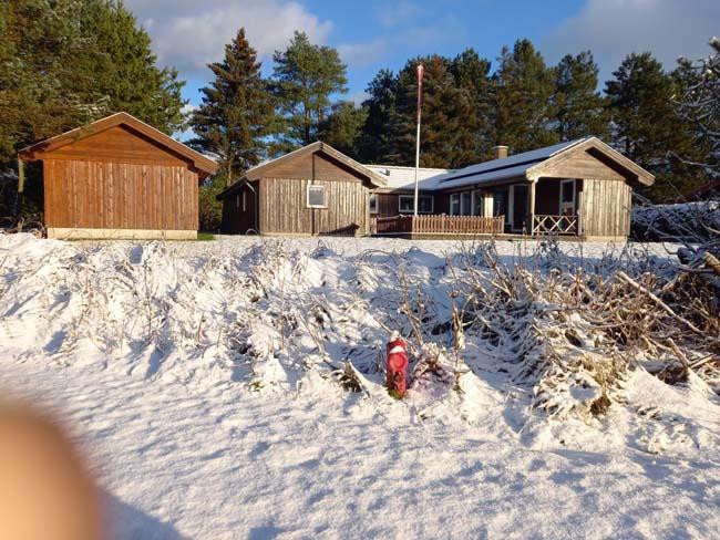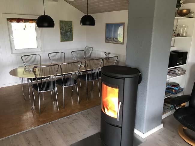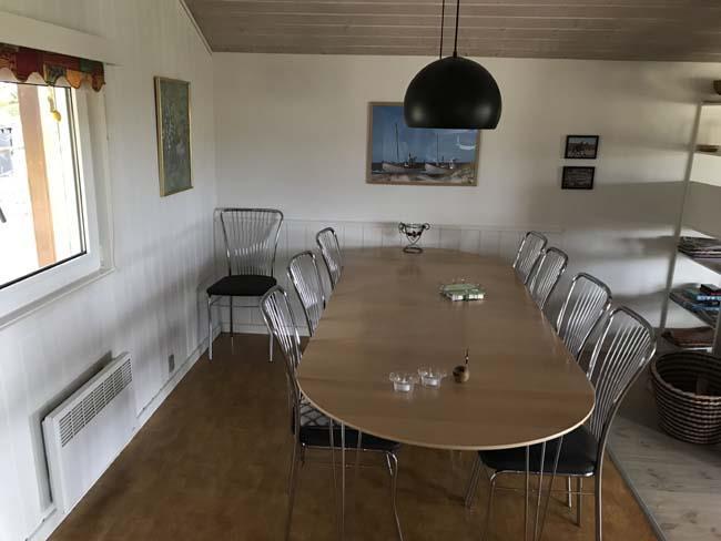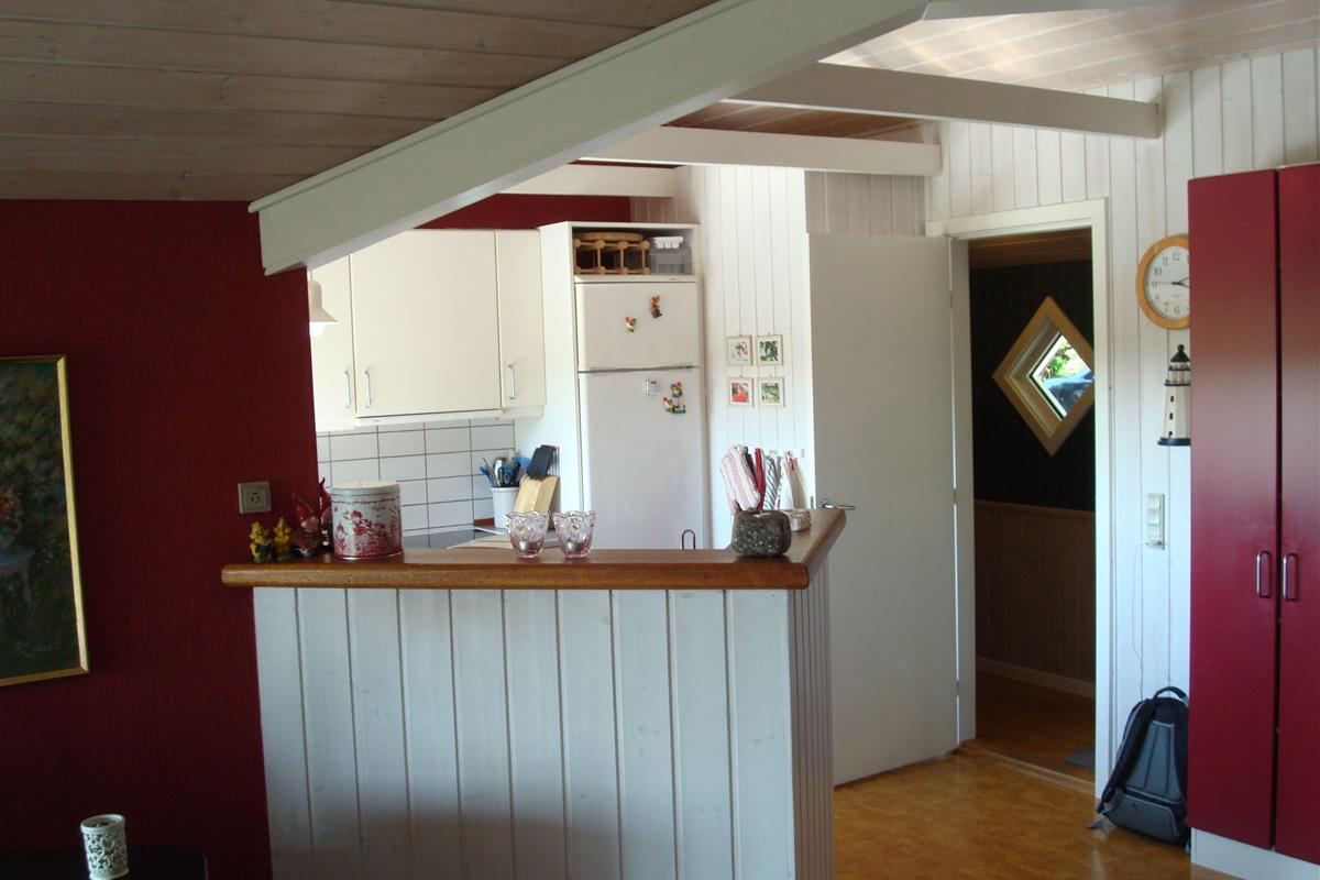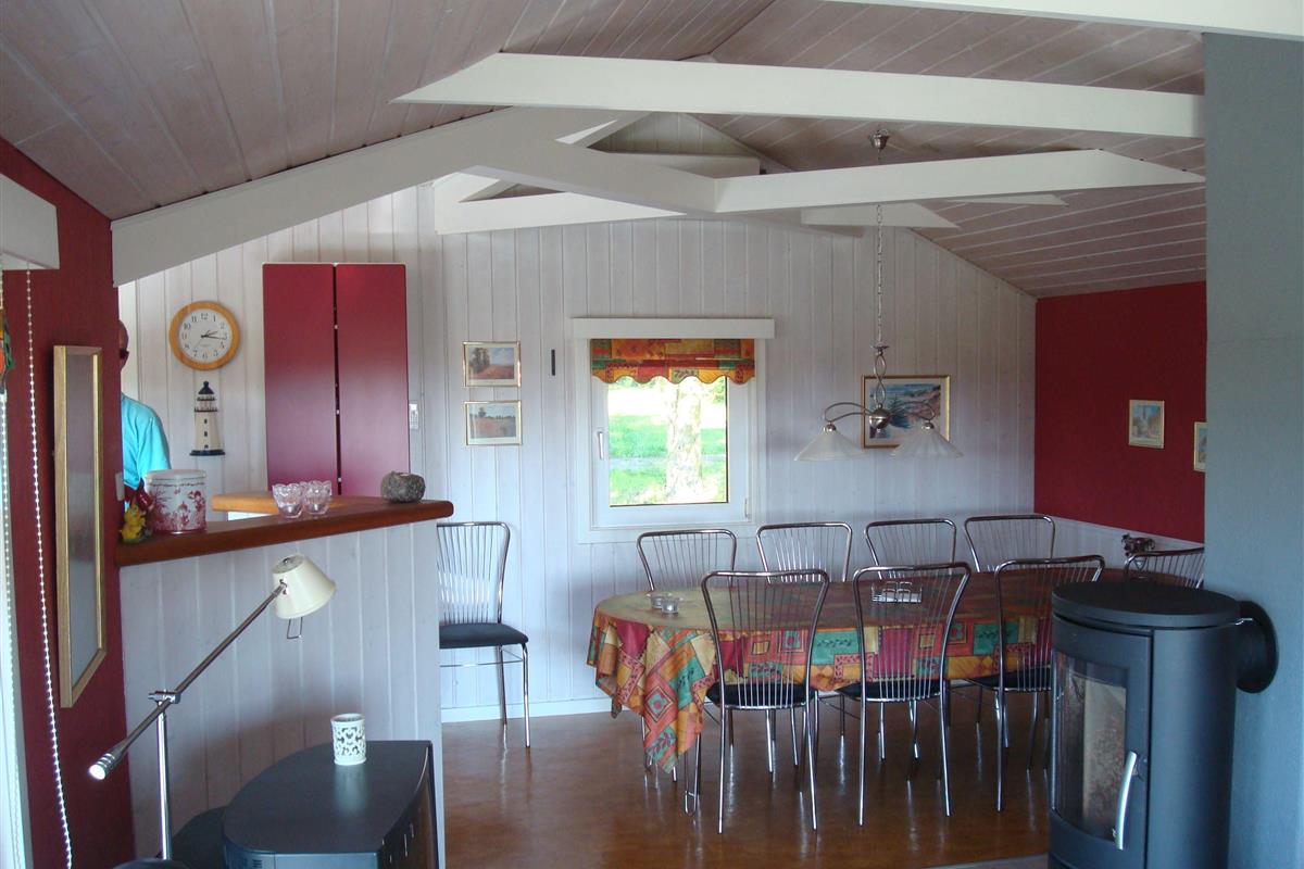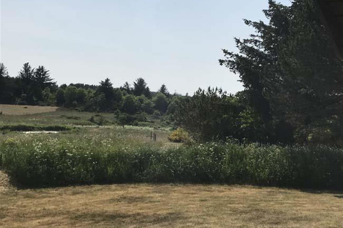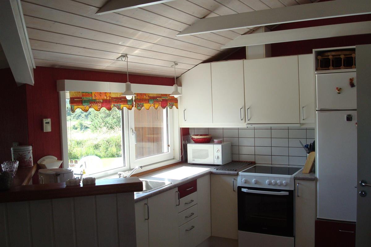 Smukt, hyggeligt og MEGET velholdt sommerhus med storslået udsigt over det kuperede landskab. Huset er bygget i U-form og yder således dejlig læ for vinden, dels når man sidder på den delvis overdækkede terrasse eller fremme i den åbne del. Fra den hyggelige stue, hvor der er trægulv, BRÆNDEOVN, TV m/parabol og 25 kanaler fra stofa. Der er såvel fra spiseafdelingen som sofaen en virkelig SMUK UDSIGT over grunden og de åbne vidder. I det øvrigt meget veludstyrede køkken er der bl.a. OPVASKEMASKINE, microovn, køleskab m/god frysekapacitet. Der er 2 store soveværelser, hvoraf 1 med db. seng (180x200), 1 med 3/4 seng (140x200) og et vær. med 2 overkøjer (70x200) samt en 3/4 seng. Huset har INTERNET, SAUNA, SPA VASKEMASKINE og bruser.- i særskilt rum er toilet og håndvask. - Gulvvarme i badeværelsene. Til terrassen hører: bord, 8 stole, 3 pos. stole, bænk, parasol og grill. - - ligesom der er tænkt på børnerne med SANDKASSE & GYNGER. Dette hus udlejes ikke ungdomsgrupper.
