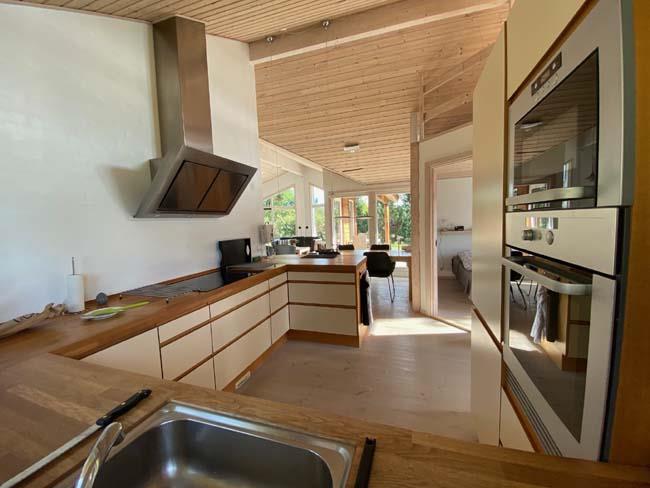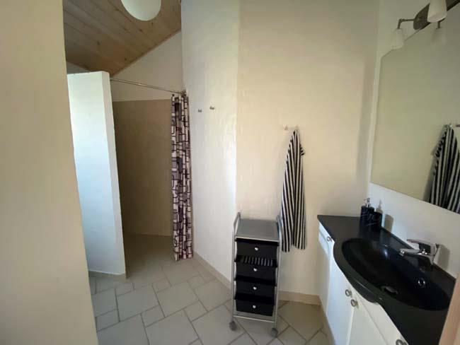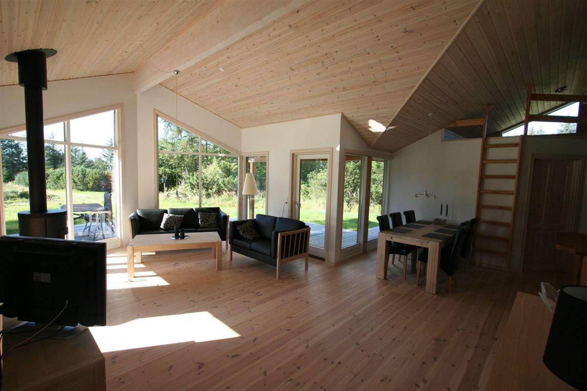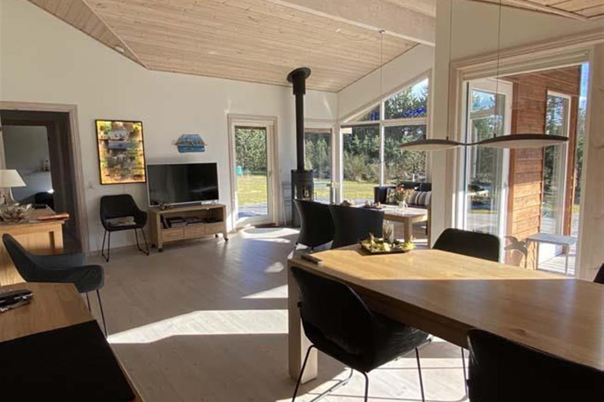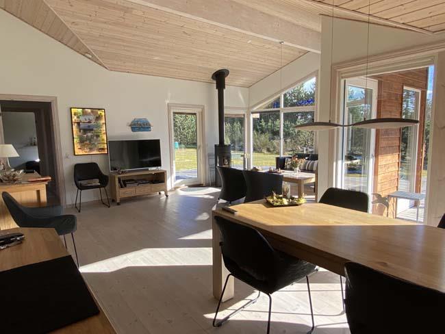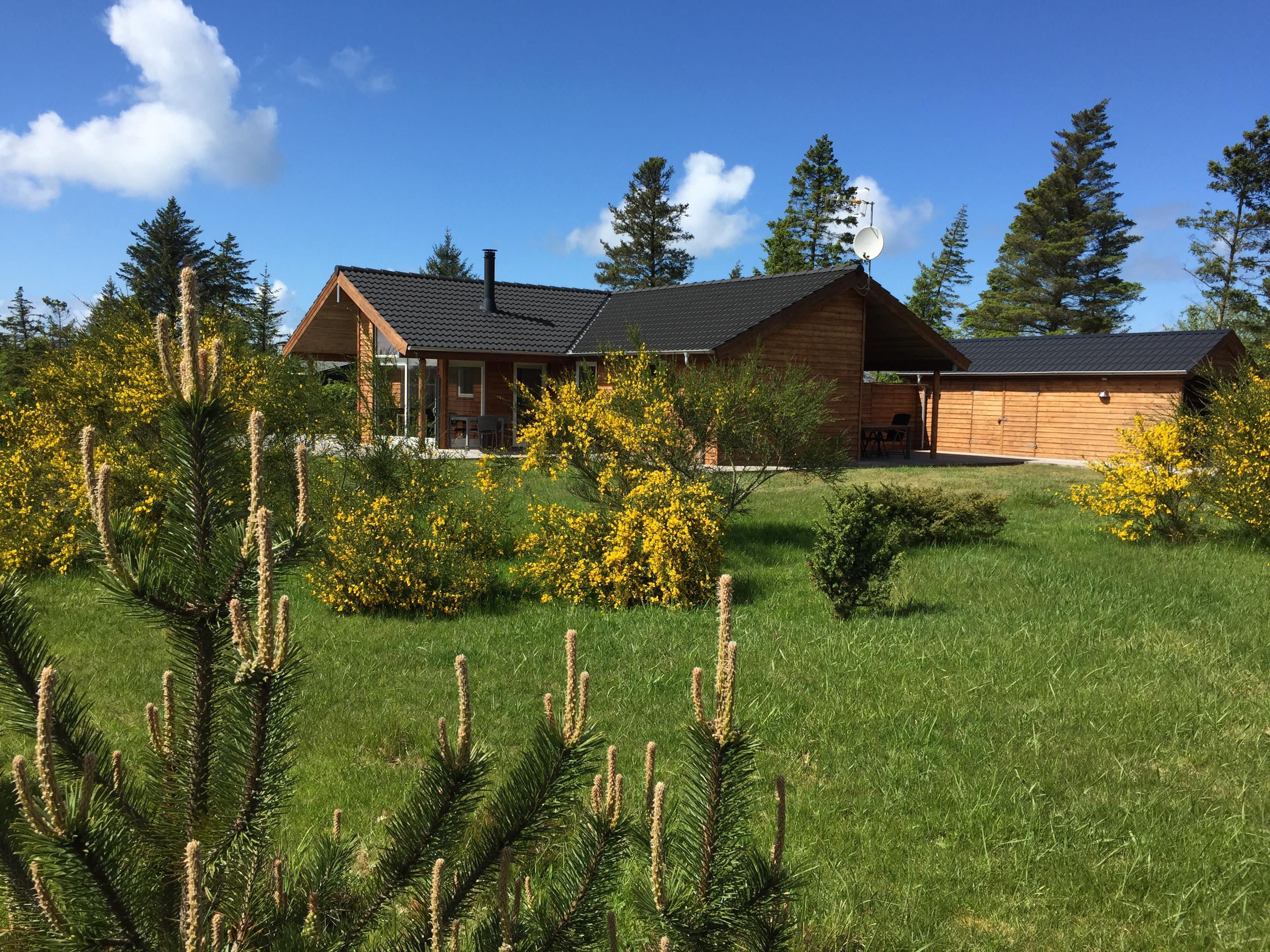 A fantastic tastefully, very well-equipped and well-appointed holiday cottage with SEA VIEW. The house is on a lovely patch of land (2500m2) partly lawn and uncultivated site with among other things a ravine with a terrace, which gives shelter from the wind. The house, which is built in 2007, has 4 bedrooms (3 with double beds, 1 with double sofa bed), 2 bathrooms, where one of them has steam spa cabin and sauna. The charming bright Livingroom is tastefully furnished with good furniture, fireplace, and colour-TV with dish aerial (International channels). The well-functioning kitchen has everything your heart most desire: Among other things an automatic dishwasher, 50 litre deep freezer, microwave. Furthermore the house has a washing machine, a clothes-drier, a vacuum cleaner, 4 bicycles, nice garden furniture and 4 lounge beds.