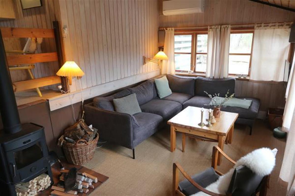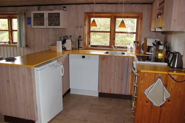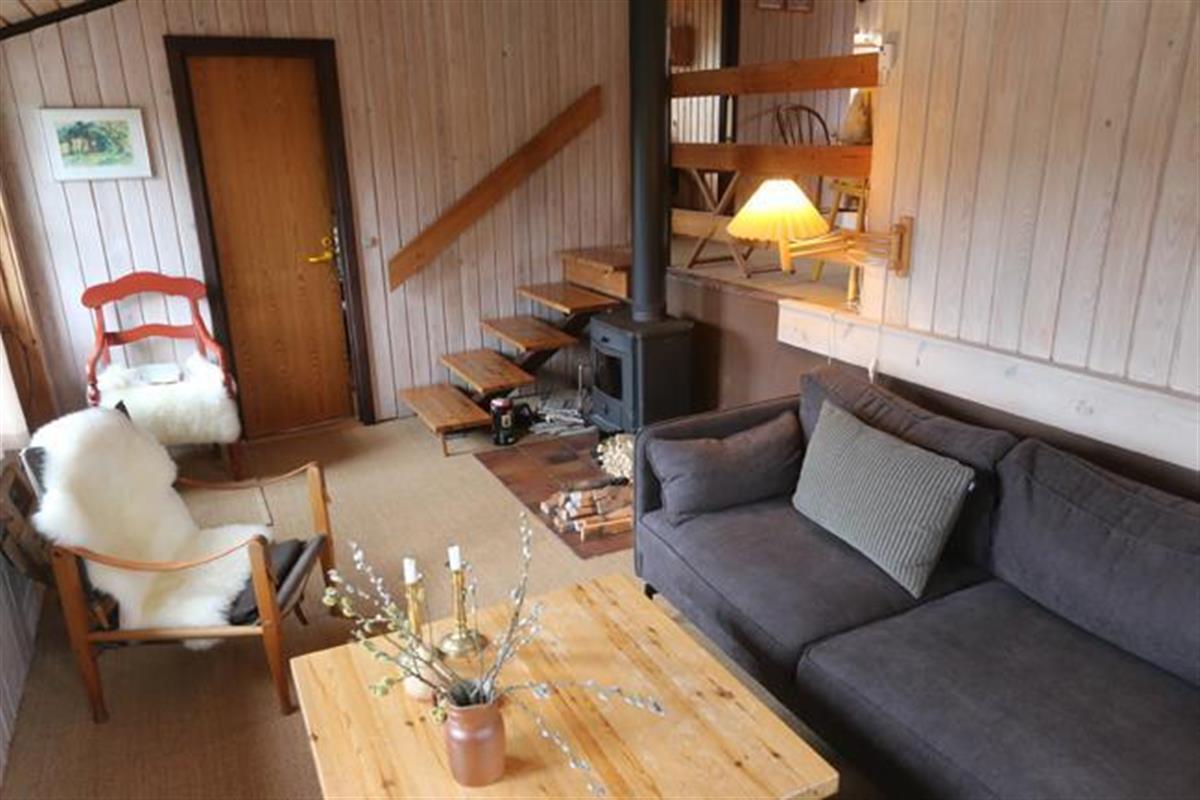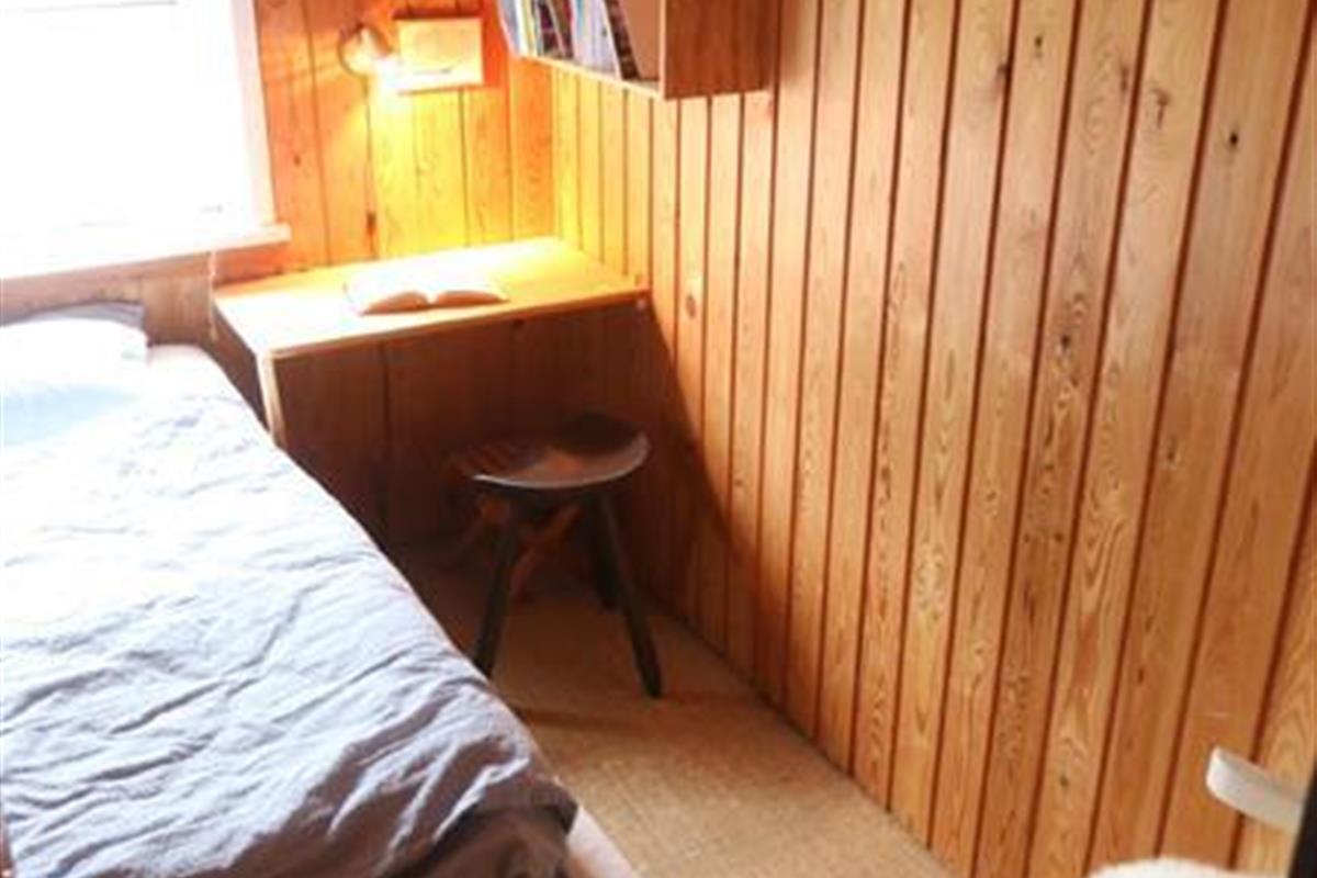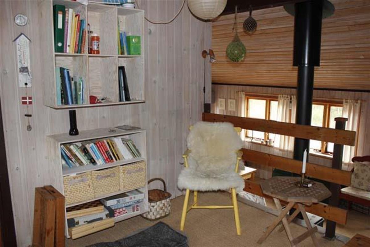 The house has fine furnishing with its warm soul and difference of level. The house has a good conversation kitchen, where there are room for the family to prepare the meals together. Here you also will find the sweet dining table with some beautiful old fashion chairs. How cosy and nice. This room has a wonderful view over the area. The room has high celling and has a funny loft bar, where the strong family members can practise bull-ups. To get into the living room you have to go down the stairs. Down here you find a very cosy living room, which will set the scene for some good hours with the family with games of cards and board games. As an extra good detail in the living room there is a wood burner that the whole family can get the warm from. In general the house has a lot of cosy corners, where you can enjoy a good book.