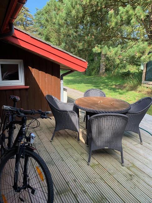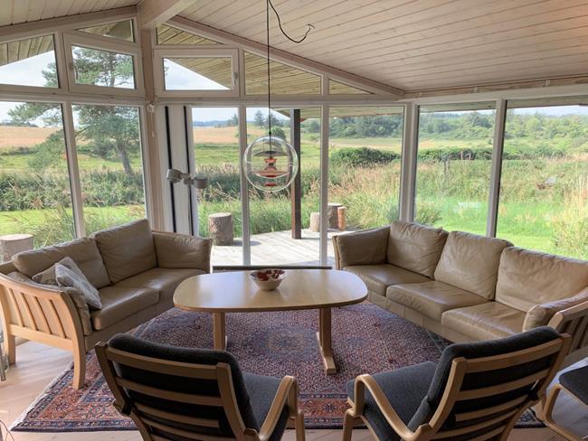 Dieses grosse Sommerhaus mit gut 100m2 lädt dazu ein die fantastische Umgebung zu erkunden. Sei es zu Fuss, bei Fahrrdtouren oder mit dem Auto. Das grösste ist jedoch, dass man im Haus, das Gefühl hat mitten in der Natur zu sein. Der grosse Raum zusammen mit der Küche hat 11 grosse Fester, die vom Dach bis zum Boden reichen sowie einen Zugang zu der Terrsasse im Süden und der im Westen, die überdacht ist. Daher kann man selbst bei stürmischen oder regen Wetter draussen oder von der Stube aus die fantastische Natur geniessen. Keine Nachbarhäuser oder anderen Hindernisse verstellen den Blick auf die traumhafte Natur der Svinkløv Plantage. Eine weitere Terrasse im Eingangsbereich ist nach Norden ausgerichtet. Insgesamt wird das Haus von ca 70m2 Holzterasse umgeben. Die Wärempumpe(Raumklimaanlge) oder ein Feuer im Kamin sorgen auch bei kalten Termperaturen für eine behagliche Wärme. Der Besuch der hauseingenen Sauna und der Whirrlpool sorgen ebenfalls für ein Gefühl von wohliger Wärme.
