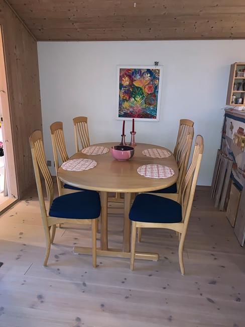 Die Küche ist mit allen augestattet, was es braucht. Spühlmaschine, Herd mit Umluftofen und Kaffeemaschine so wie Küchenutensilien und Geschirr. Das Haus verfügt über Wifi, eine Musikanlange, 2 Smart-TVs und 2 Chromecast. Die Betten für 6 Personen verteilen sich auf ein Zimmer mit Doppelbett, ein Zimmer mit einem Einzelbett und Schreibtisch sowie ein grosses Zimmer mit Einzelbett und Alkoven mit Doppelbett. Alle Schlafzimmer bieten den Ausblick in die Natur. Das grösste Zimmer verfügt zusätlich über grosse Panoramafenster.