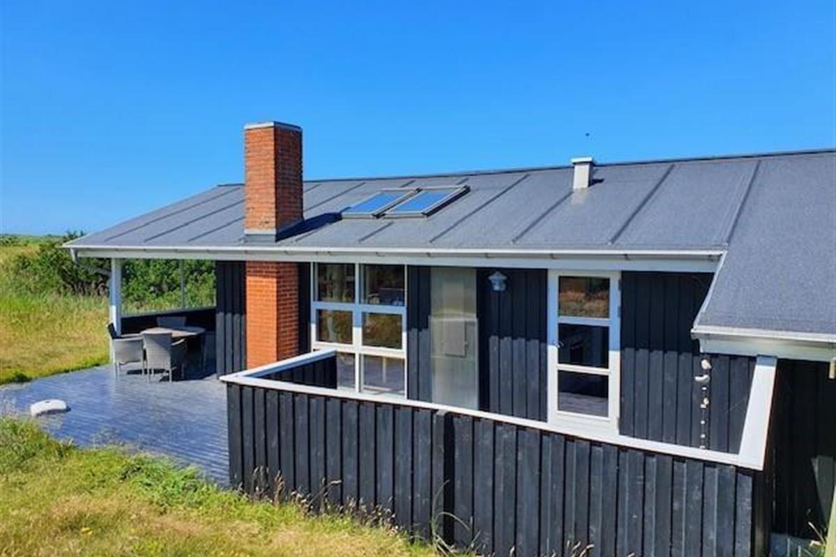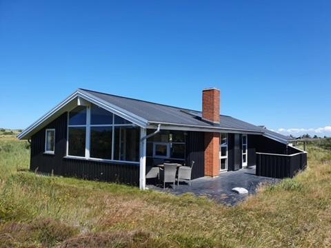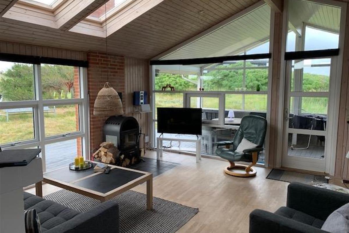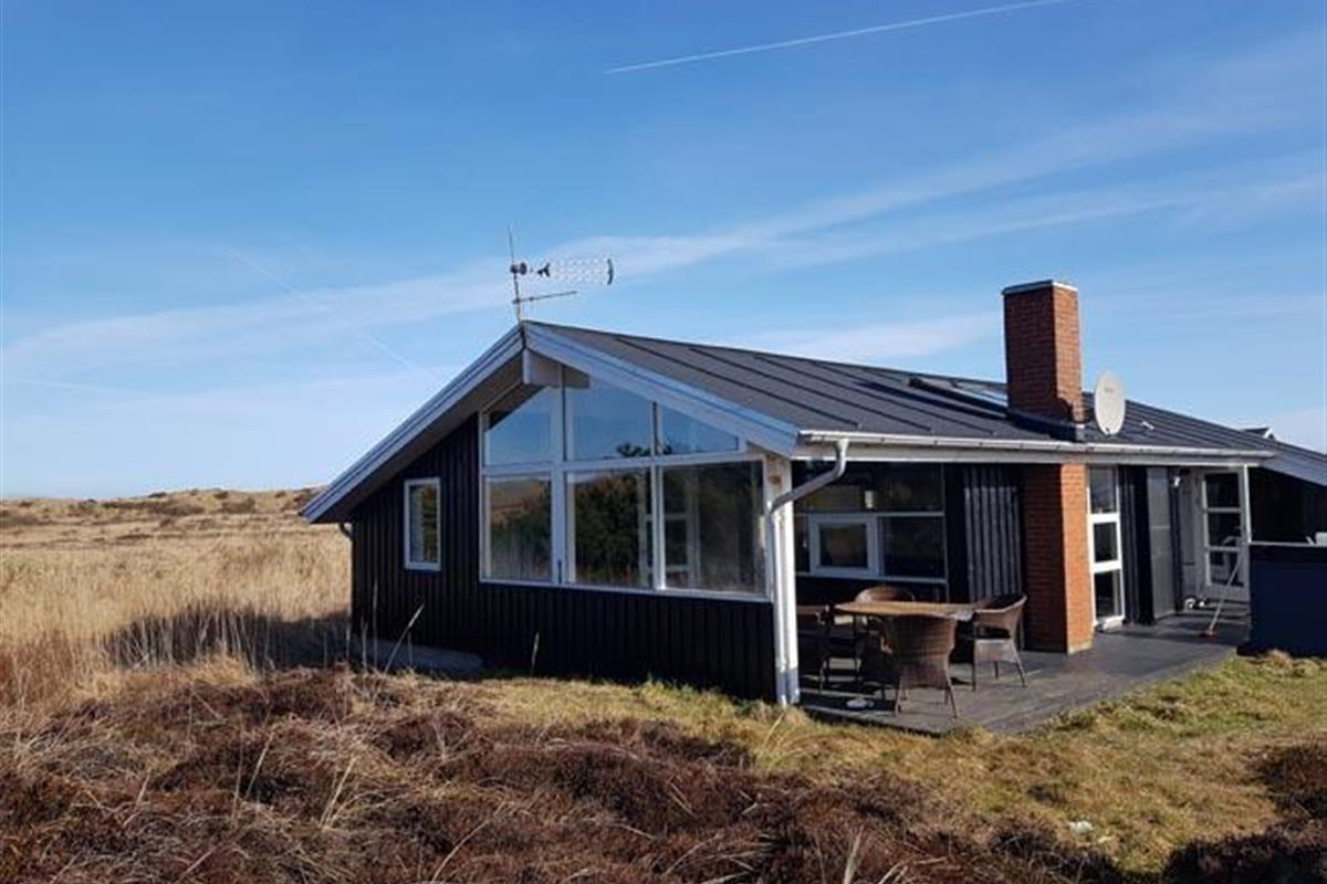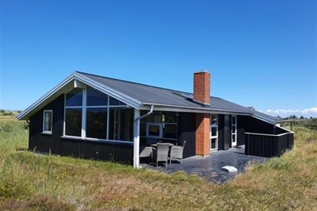 Skønt sommerhus med højt til loftet på en dejlig naturgrund i 1. klitrække kun 200 meter fra stranden.