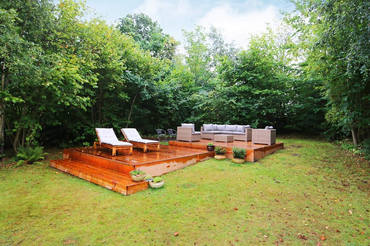 Ringsum das Ferienhaus stehen mehrere Terrassenflächen sowie ein großes, umzäuntes Rasengrundstück zur Verfügung.