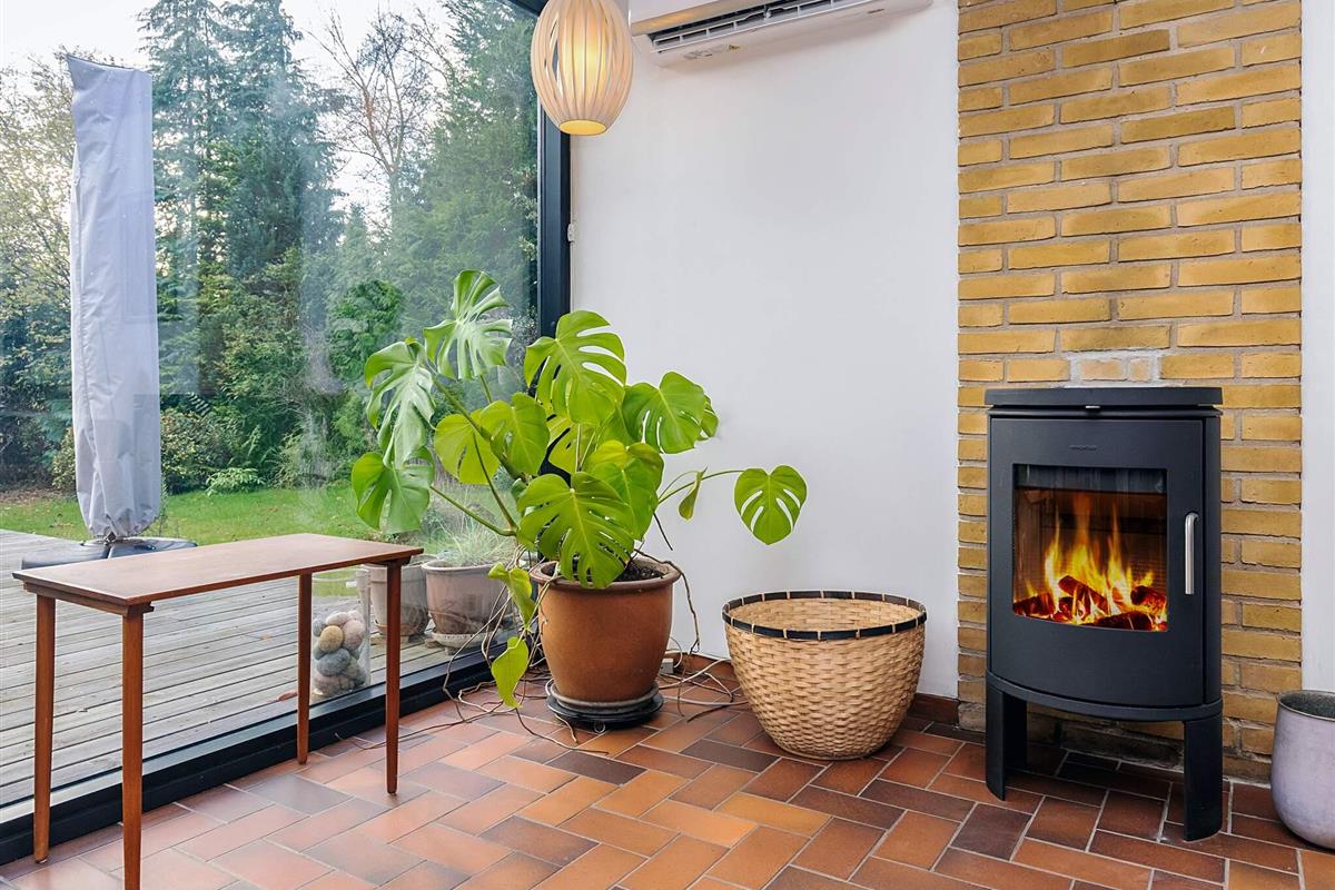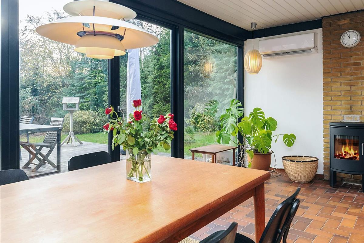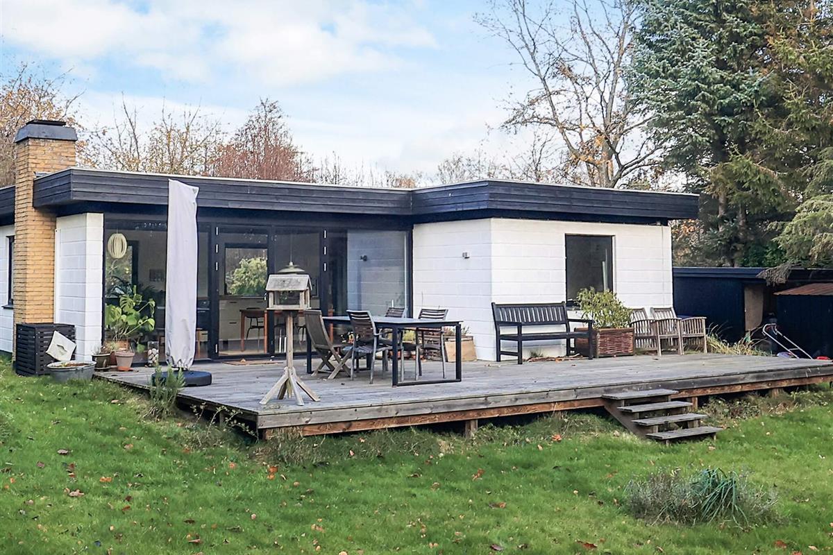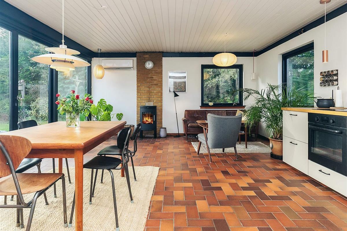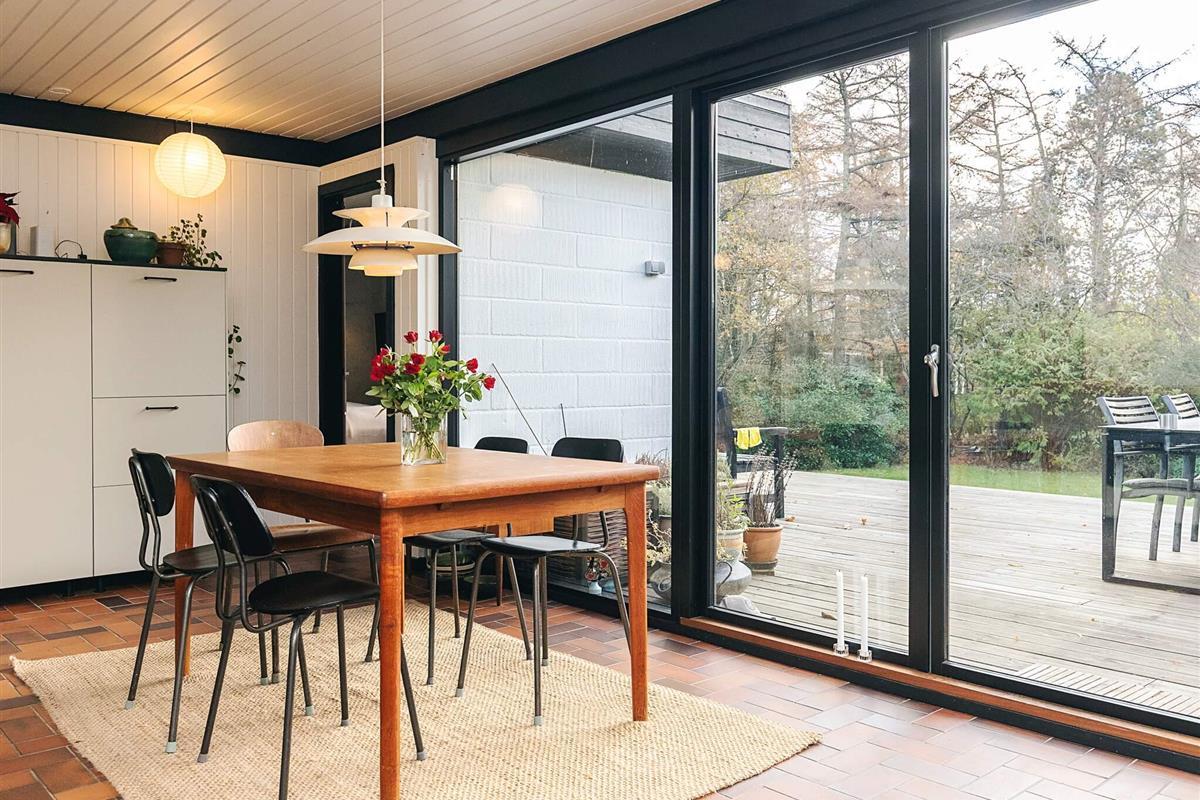 Ferienhaus in der Nähe von Smidstrup Strand, mit großer, schöner Terrassenfläche auf dem Grundstück. Innen gemütlicher Küchen-/Wohnbereich für das Familienleben mit klimafreundlicher Luft-Luft-Wärmepumpe, Holzofen und doppelter Schlafcouch. Zur Küchenausstattung gehören auch Cerankochfeld und Geschirrspüler.