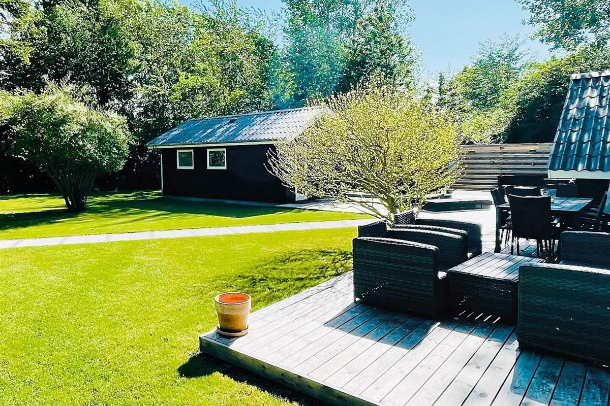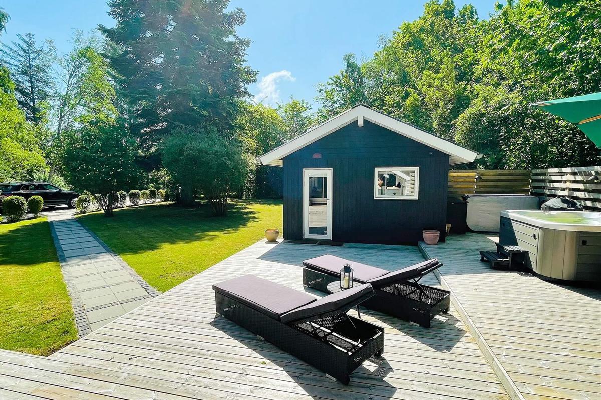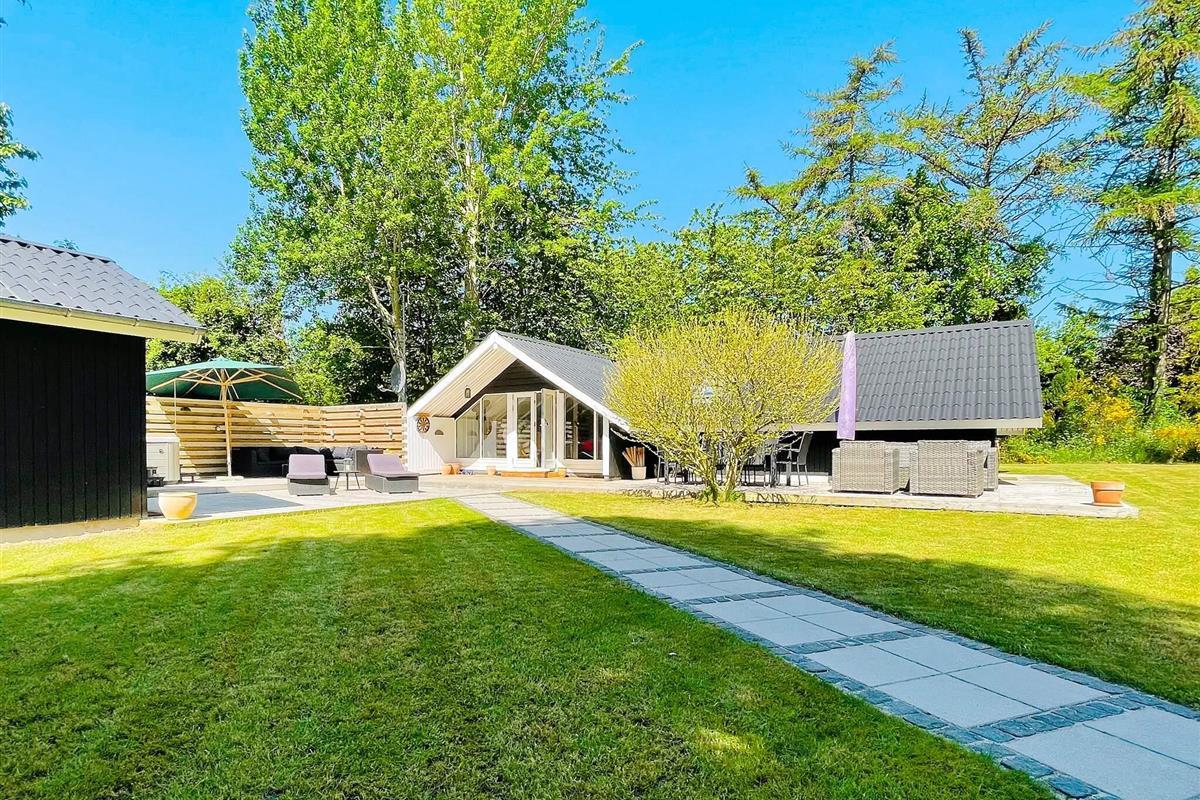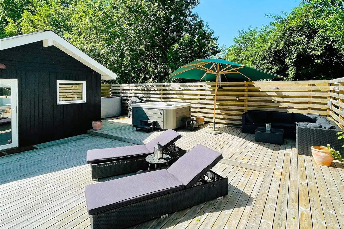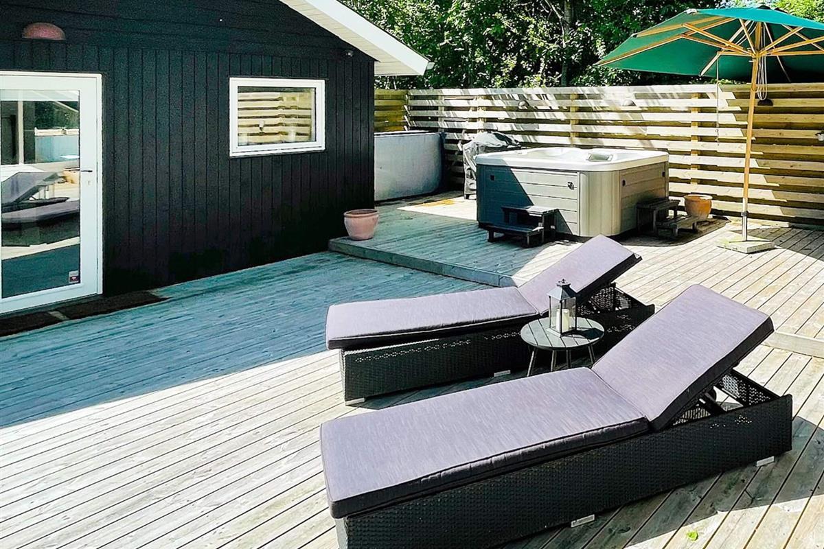 Sobald Sie nach draußen treten, spüren Sie die sofort aufhellende Atmosphäre. Die große Terrasse mit Liegestühlen und Essbereich ist ideal für ein Frühstück in der Sonne, Abendessen im Freien oder einfach nur zum Genießen der ruhigen Umgebung. Für zusätzlichen Genuss gibt es einen Außenwhirlpool für fünf Personen, der perfekte Ort, um sich nach einem Tag am Strand unter freiem Himmel zu entspannen. Der Garten bietet noch mehr Platz für Spaß, sei es zum Grillen, zum Lesen im Schatten oder für Spiele, die alle unterhalten.