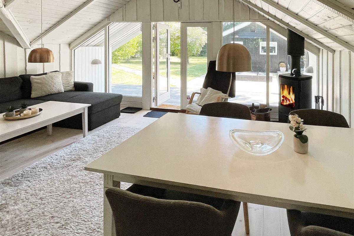 Dieses einladende Ferienhaus in der Nähe von Smidstrup Strand ist auf Komfort, Entspannung und gemeinsame Zeit ausgelegt. Der helle Wohnbereich kombiniert eine gut ausgestattete Küche und eine gemütliche Lounge mit Holzofen, Chromecast und Fernseher – der perfekte Ort für gemütliche Morgenstunden oder entspannte Abende. Mit drei komfortablen Schlafzimmern im Haupthaus und einem gemütlichen Annex mit eigenem Bad bietet das Haus viel Platz für Familien oder Freunde, die gemeinsam reisen.