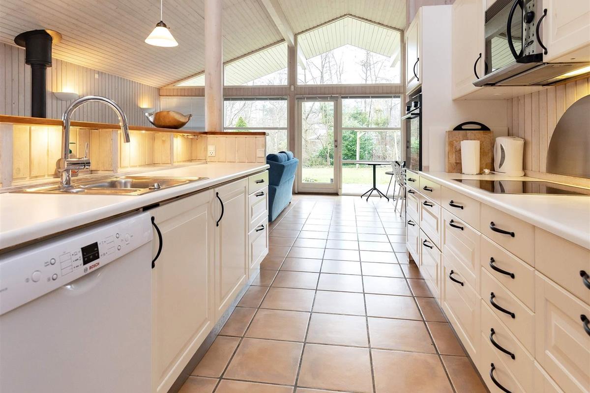 Draußen können Sie den Garten mit Gartenmöbeln, Sonnenliegen und einer überdachten Terrasse genießen. Es gibt auch einen Carport. Das Ferienhaus verfügt über angenehme Fußbodenheizung und liegt in der Nähe von Smidstrup Strand, wo Sie herrliche Spaziergänge entlang der Küste unternehmen können.