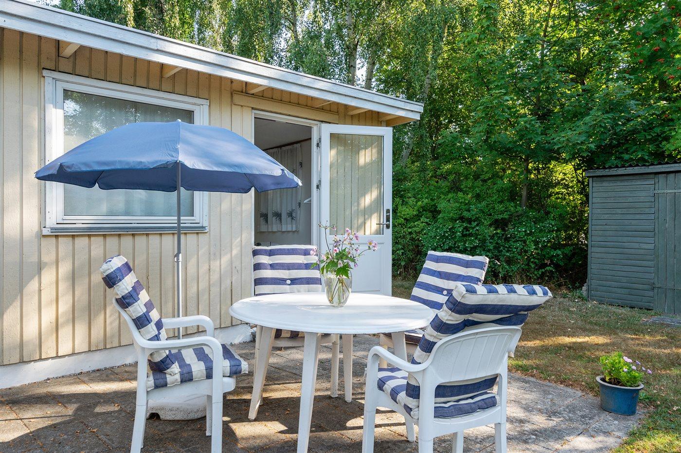 De vakantiewoning is gelegen op een 1276 m² groot aangelegde tuin. De grond is omheind. Afstand tot de zee 900 m. Dichtstbijzijnde winkel 750 m. Bij de vakantiewoning hoort 20 m² terras. Daarnaast is er een 10 m² groot overdekt terras. Barbecue. Parkeerplaats bij het huis.