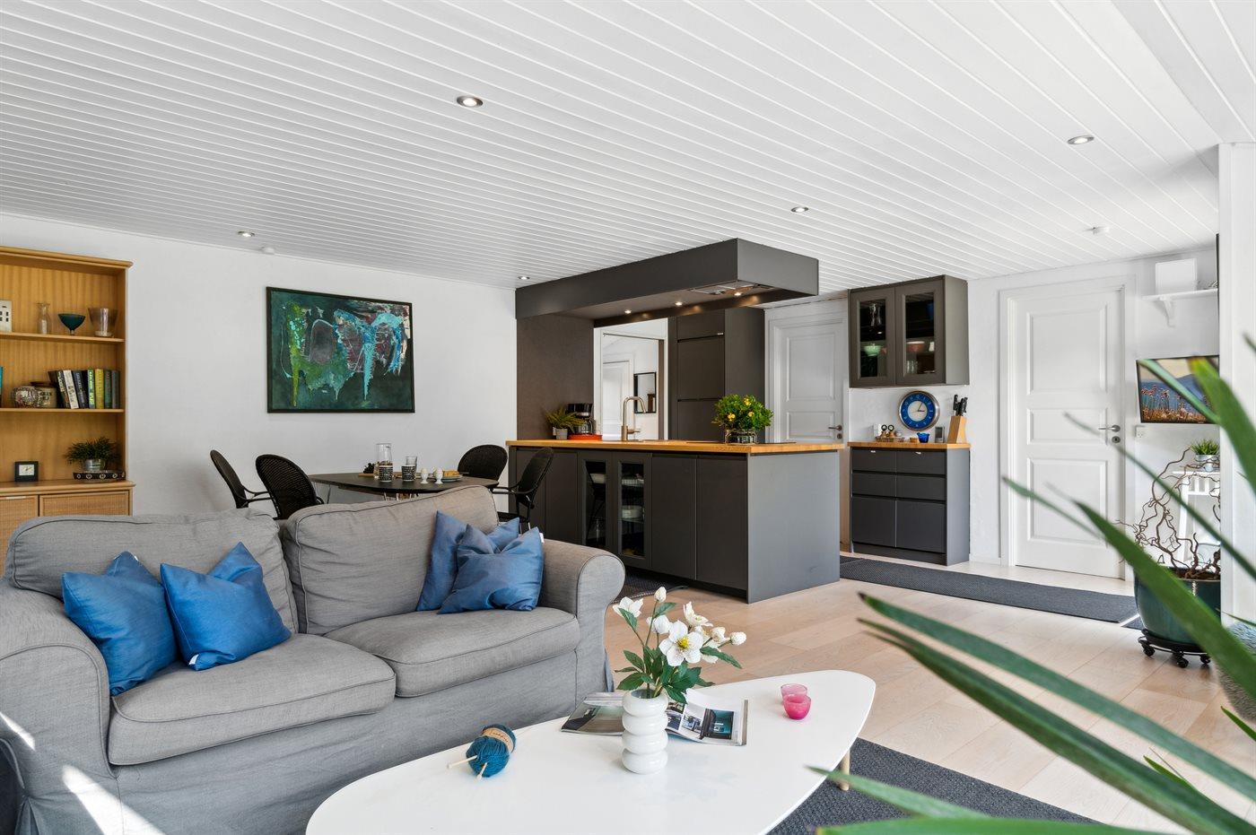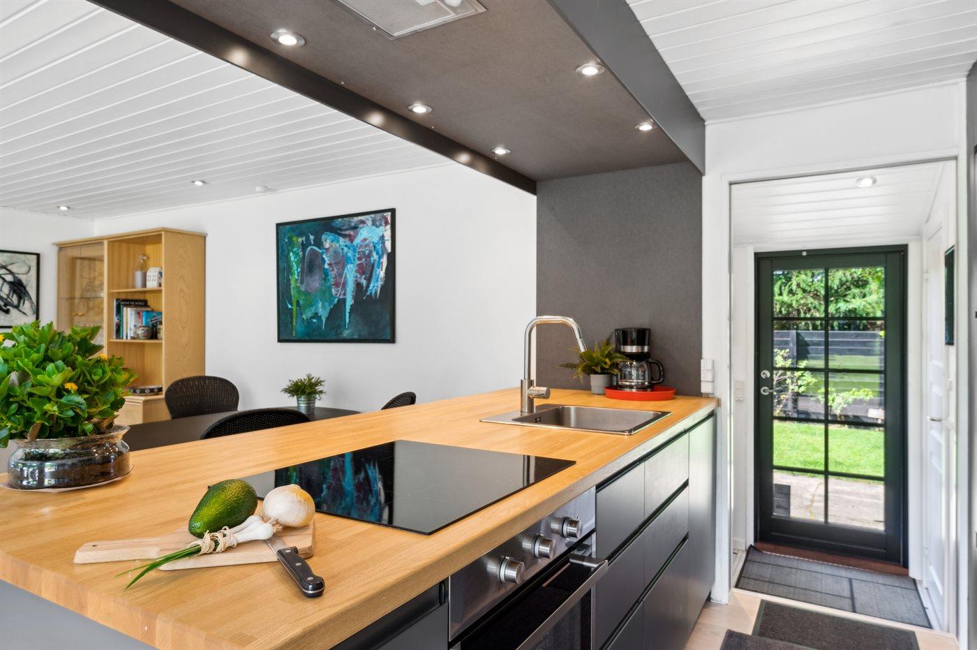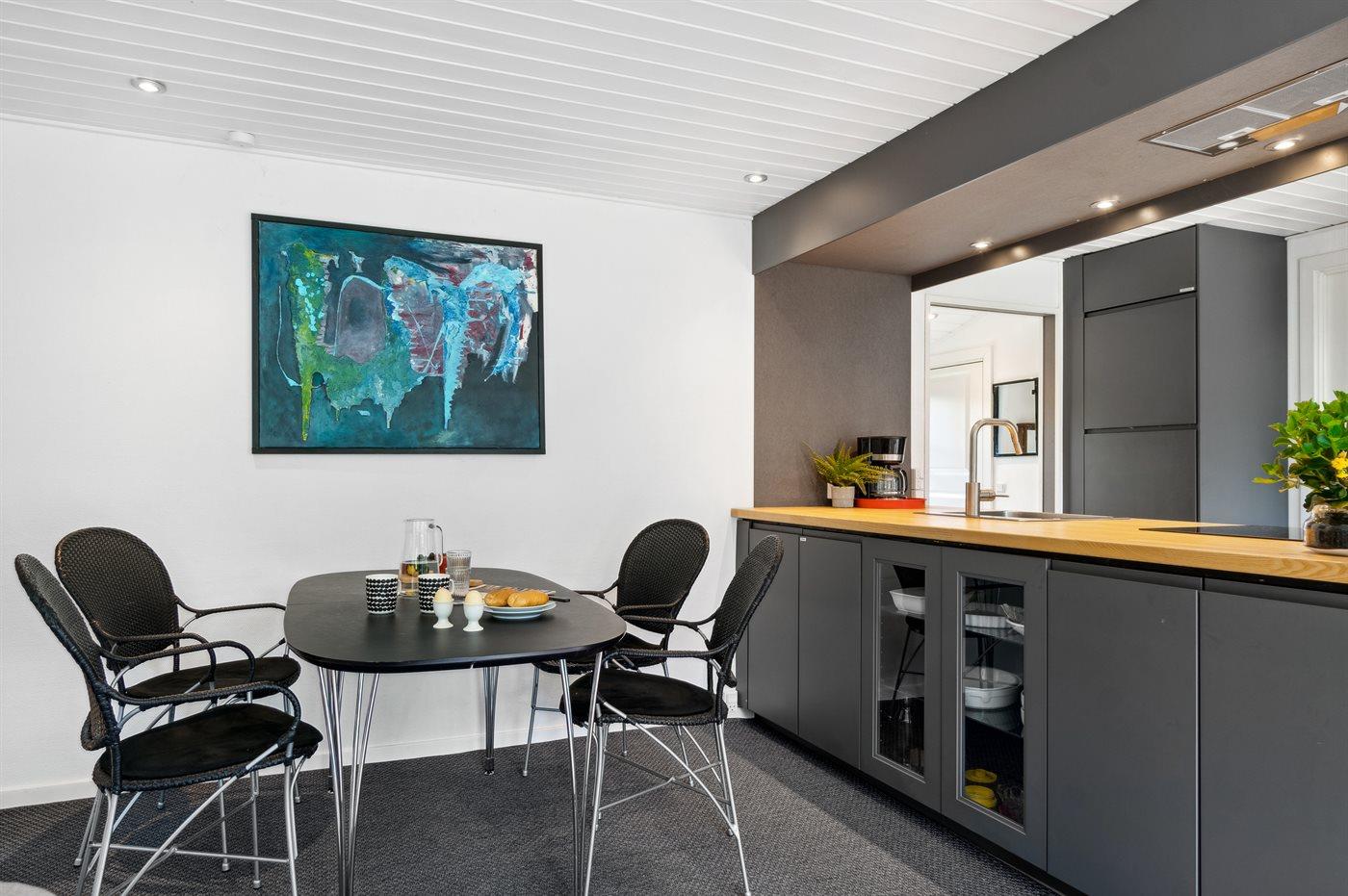De keuken is uitgerust met koelkast Er is 4 inductiekookplaten, heteluchtoven en vaatwasser.