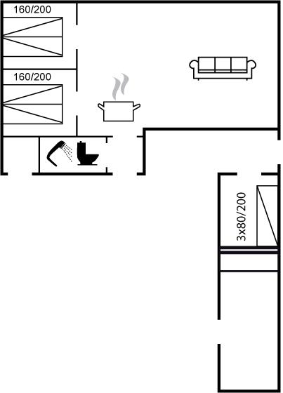 Er zijn in totaal 3 slaapkamers. De slaapplaatsen zijn als volgt verdeeld: 5 slaapplaatsen in eenpersoonsbedden. 1 slaapplaatsen in stapelbedden. 2 van deze slaapplaatsen bevinden zich in de bijgebouw.