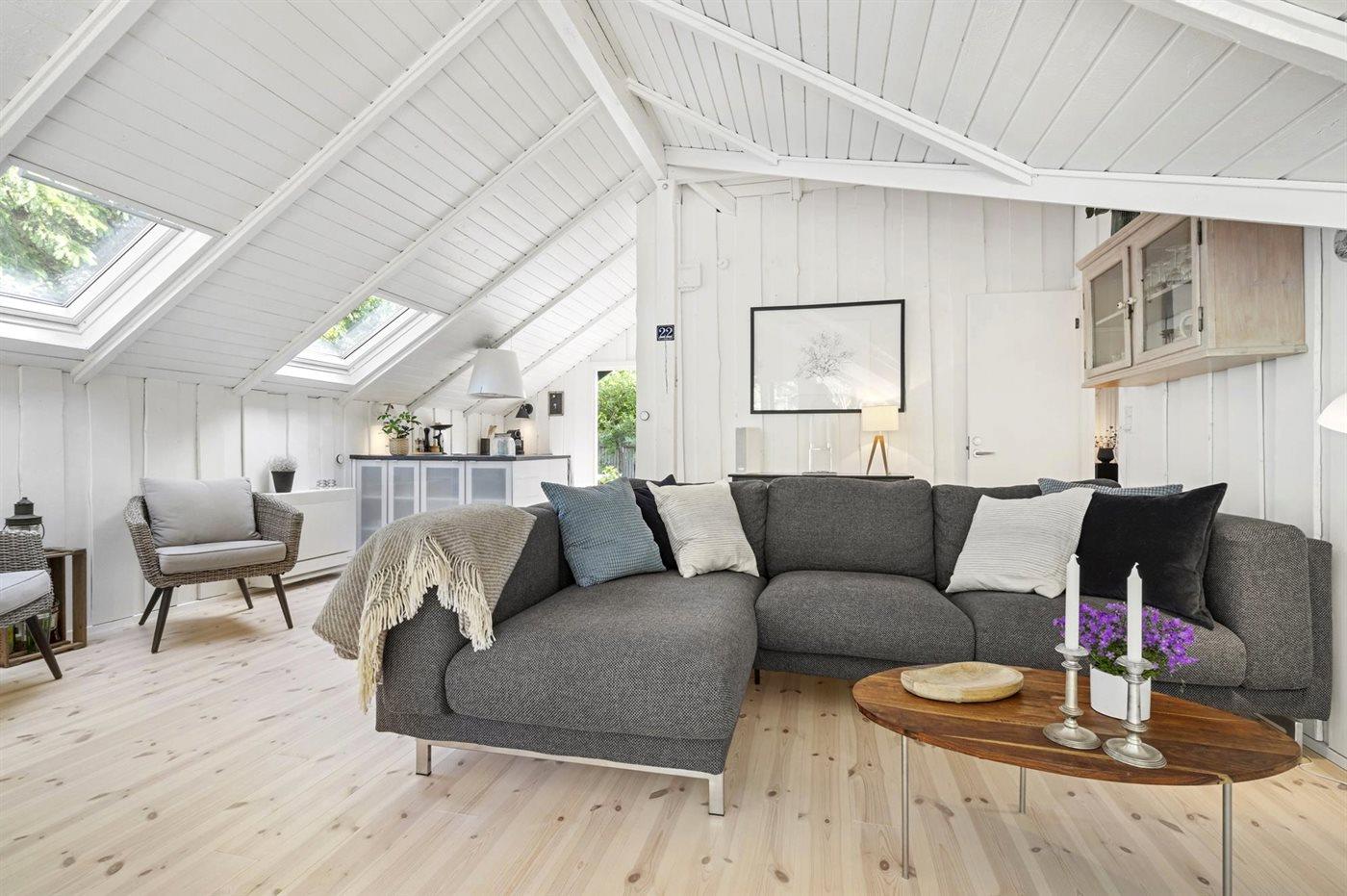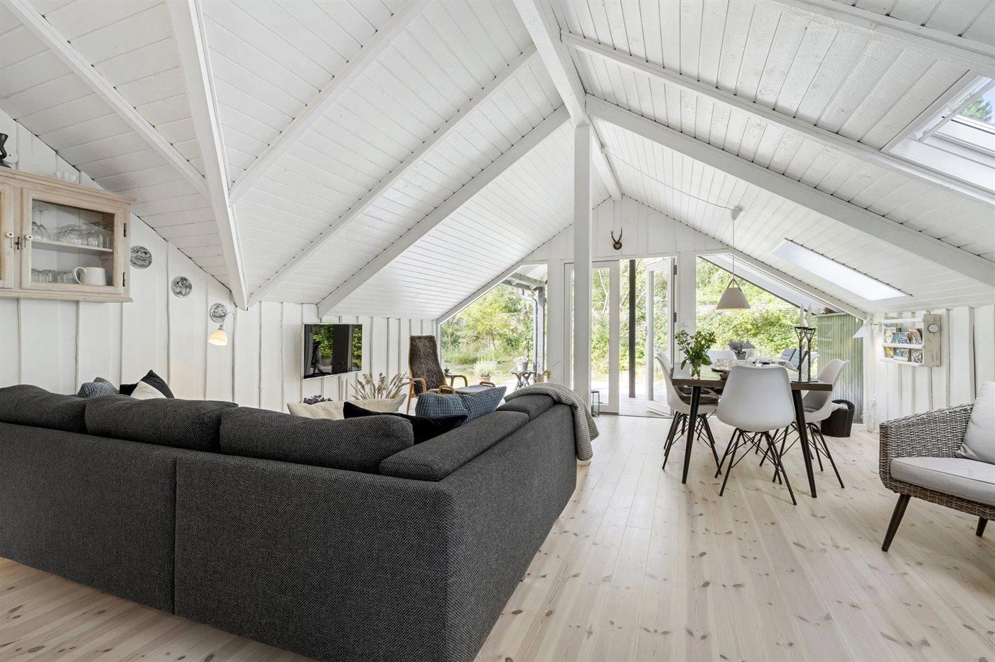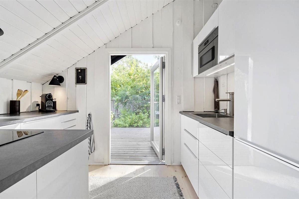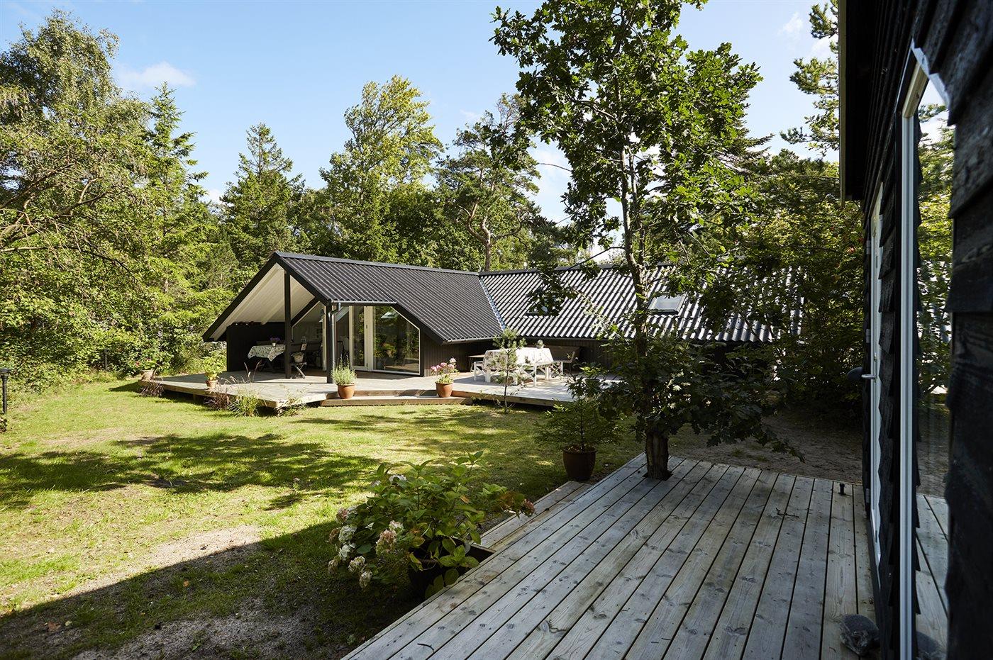 Volledig gerenoveerd vakantiehuis bij Smidstrup Strand met terras, houtkachel en elektrische laadpaal.
