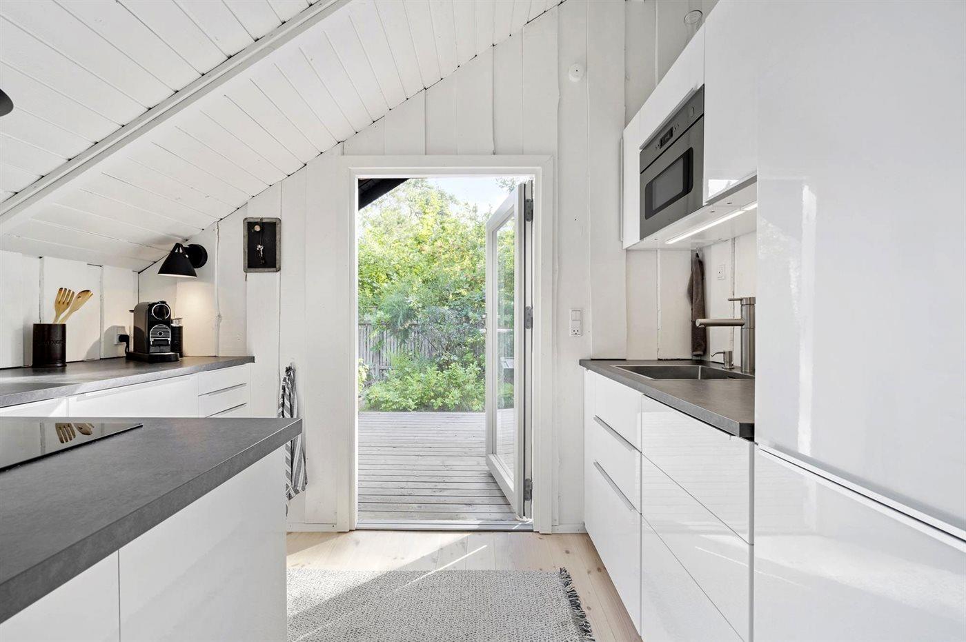 De keuken is uitgerust met koelkast Er is 4 inductiekookplaten, heteluchtoven, magnetron en vaatwasser.