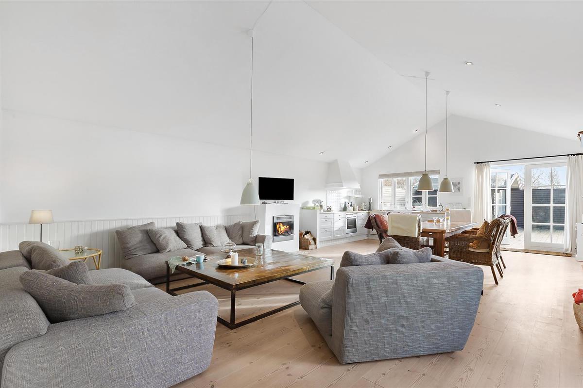 Stijlvol en licht vakantiehuis dichtbij Smidstrup Strand, perfect voor een ontspannen gezinsvakantie met buitenkeuken en haardvuur.