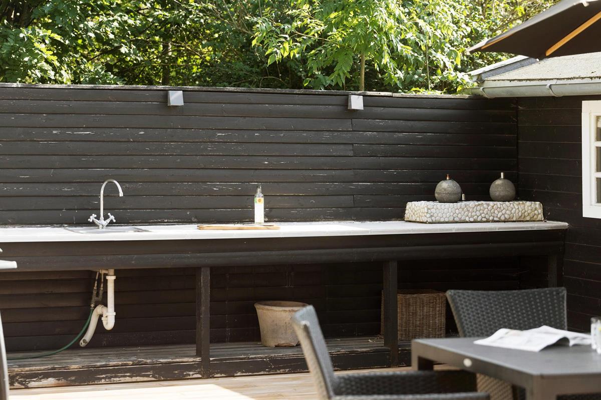 Je kunt ook genieten van het ruime houten terras met een geweldige buitenkeuken, die zowel warm als koud water biedt. Bereid heerlijke maaltijden in de buitenlucht, kom samen rond de tafel en kijk hoe je kinderen in de tuin spelen.
